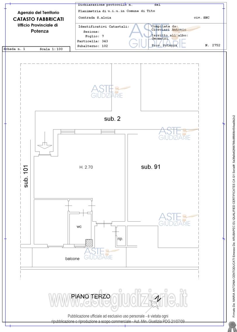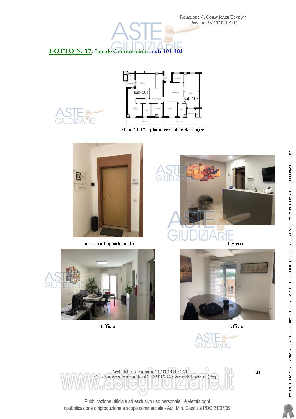 Vendita all'asta Senza incanto - LOTTO 17: diritti pari all’intero (1/1) in piena proprietà di un appartamento sito nel Comune di Tito (PZ) alla C.da Santa Loja, piano terzo costituito da un ingresso, un disimpegno, quattro vani adibiti ad ufficio, due bagni un vano adibito ad archivio, un vano adibito a cucina e due ripostigli. Prezzo base € 85.500,00 (offerta minima € 64.125,00). Data vendita 09/07/2026 ore 10:00. Professionista delegato alla vendita: Avv. Francesco Missanelli - Email "francescomissanelli@gmail.com"; Tel. 0971/443116.