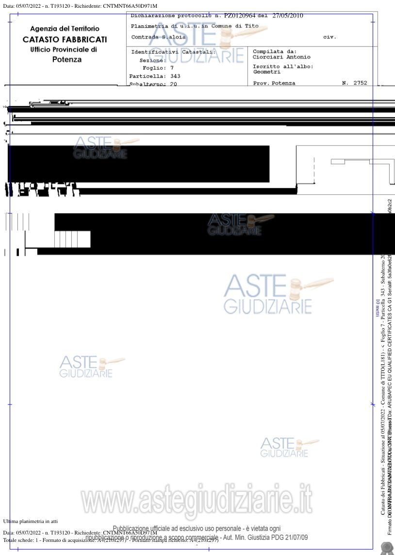 Custode Giudiziario: Avv. Antonio Lomonaco - Email "avv.lomonacoantonio@libero.it"; Tel. 0971/476444.