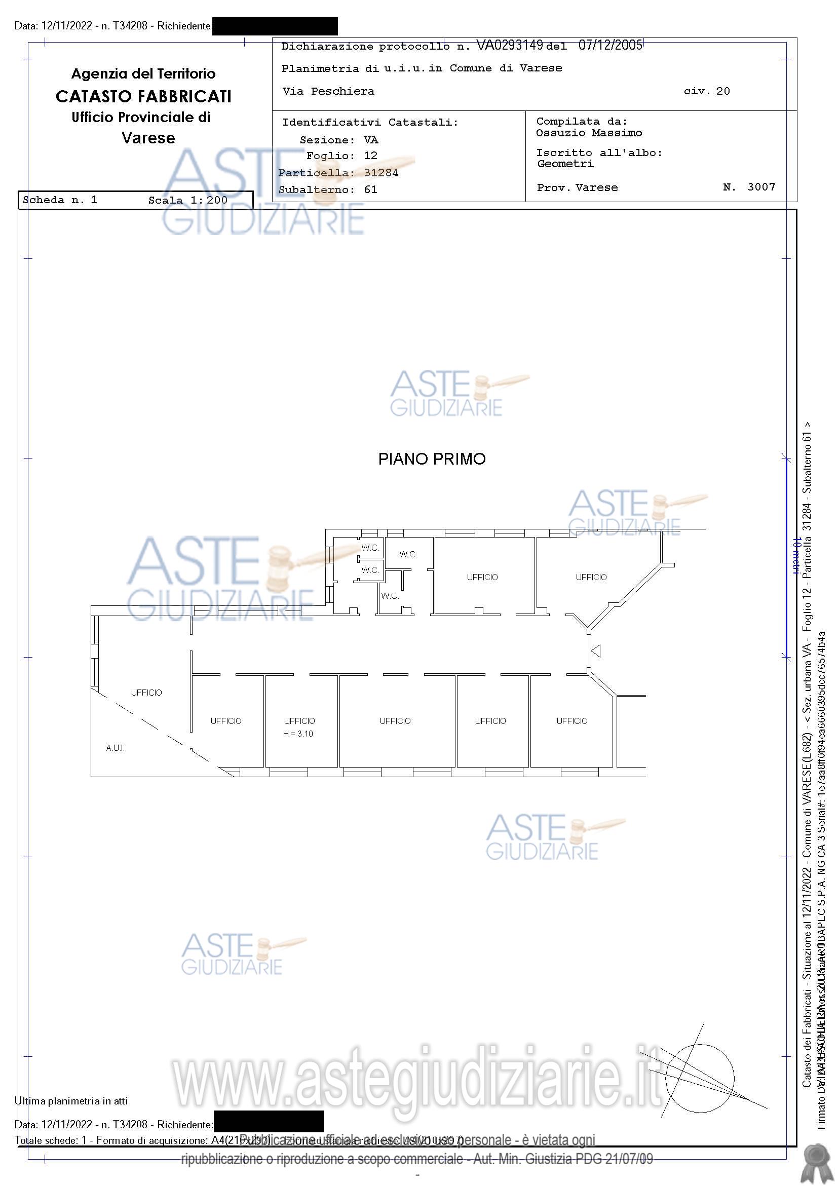 Vendita all'asta Senza incanto, con gara telematica sincrona mista - LOTTO 2: ufficio in piano primo composto otto locali ad uso ufficio, corridoio, due nuclei di servizi igienici ciascuno costituito da antibagno e due w.c., area pertinenziale di parcheggio per due posti auto in piano terreno e area pertinenziale residuale verde in piano terreno. Maggiori informazioni sul sito https.//givg.fallcoaste.it per la gara telematica. Prezzo base € 48.330,00 (offerta minima € 36.247,50). Data vendita 31/03/2026 ore 09:00. Giudice Giacomo Puricelli. Professionista delegato alla vendita Not. Sergio Rovera - Email "info@studiorovera.it"; Tel. 0332742283. Custode Giudiziario Givg Srl - Email "visite.va@givg.it"; Tel. 0332335510. Rif. Tribunale di Varese - Esecuzione immobiliare post legge 80 n. 155/2022