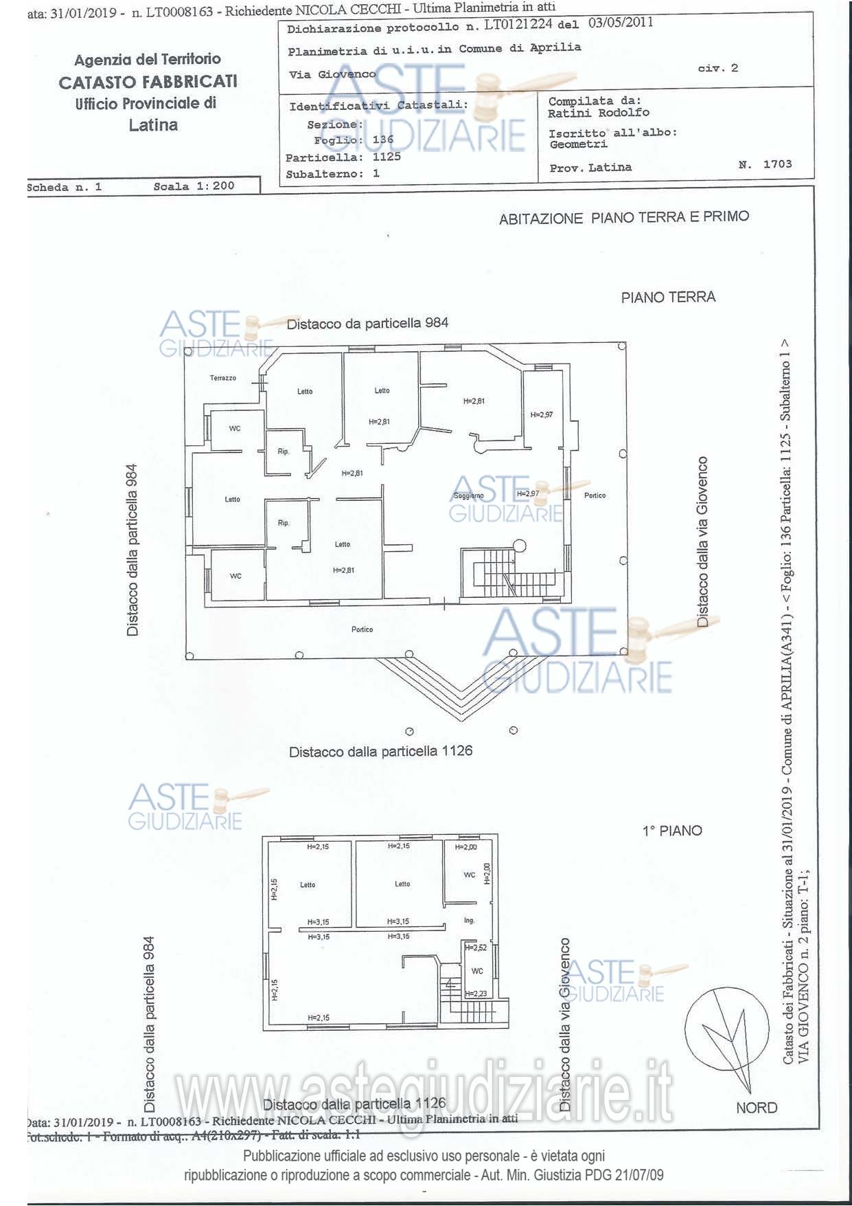 Vendita all'asta Senza incanto, con gara telematica asincrona - LOTTO UNICO: Immobile composto a p/t da ingresso, soggiorno, 4 camere, 2 ripostigli, 3 bagni, 1 lavanderia terrazzo e portico. A 1°p da ingresso, cucina, soggiorno, 2 camere 2 bagni. Il fabbricato é stato realizzato in difformità delle norme urbanistiche che disciplinano l’edificazione del sito alla data della loro realizzazione. Si evidenzia pertanto sua natura abusiva e non sanabilità, identificato al catasto, foglio 136, particella 1125, sub 1, Cat. 7. L’immobile viene posto in vendita per il diritto di proprietà 1/1. Prezzo base € 210.937,50 (offerta minima € 158.203,50). Data inizio operazioni di vendita: 13/01/2026 ore 17:00. Professionista delegato alla vendita Dott. Giuseppe Arcucci - Email "arcucci.giuseppe@libero.it"; Cell. 3282899991; Tel. 3282899991. Custode Giudiziario Dott. Giuseppe Arcucci - Email "arcucci.giuseppe@libero.it"; Cell. 3282899991; Tel. 3282899991. Rif. Tribunale di Latina - Esecuzione immobiliare post legge 80 n. 173/2017