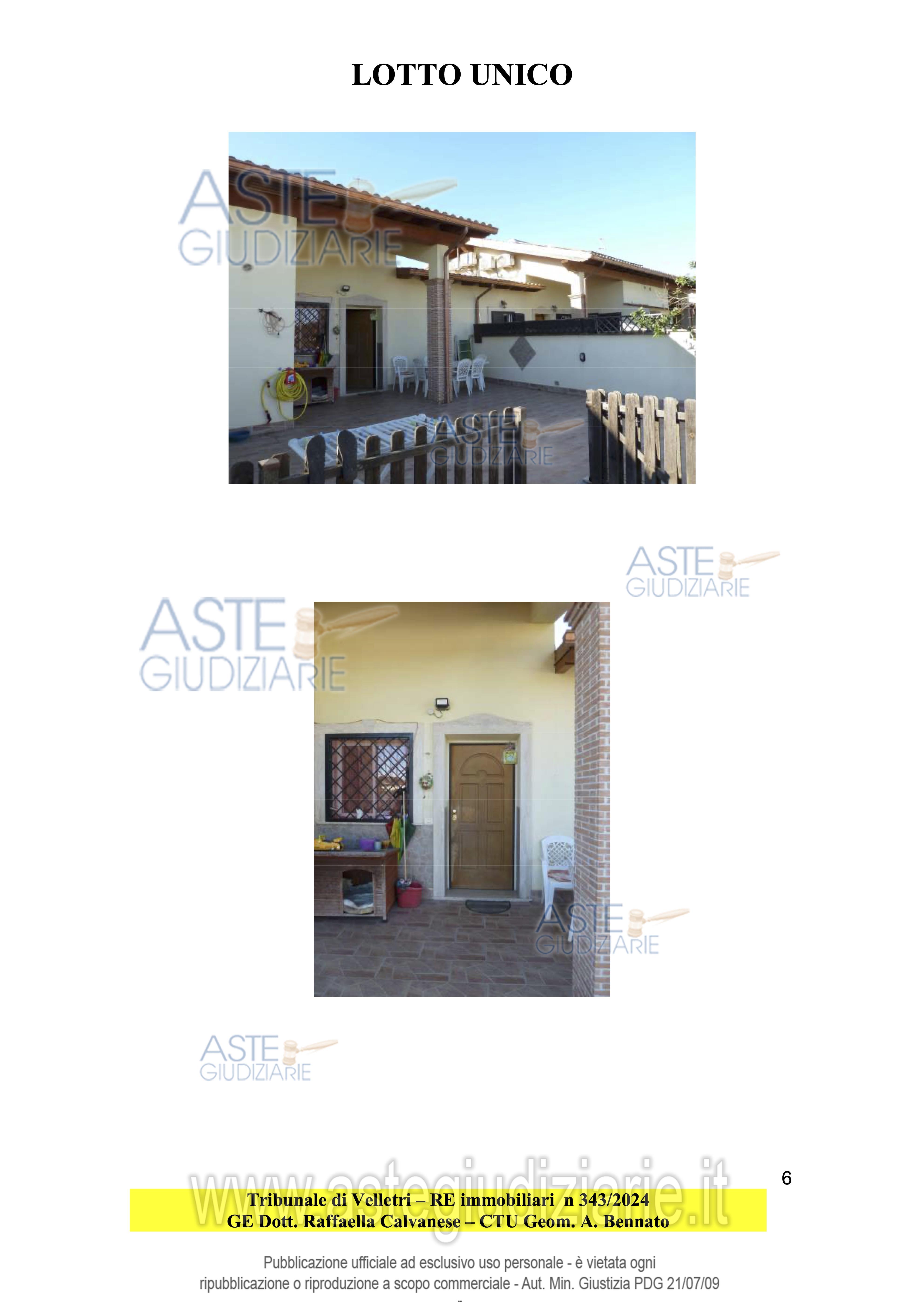 Vendita all'asta Senza incanto, con gara telematica asincrona - LOTTO UNICO: Appartamento in villino a schiera, posto al piano T e primo sottotetto. Prezzo base € 189.900,00 (offerta minima € 142.425,00). Data inizio operazioni di vendita: 15/04/2026 ore 11:00. Giudice Dott. Raffaella Calvanese. Professionista delegato alla vendita Avv. Rita Mastrogirolamo. Custode Giudiziario Avv. Rita Mastrogirolamo - Email "studio@mastrogirolamo.com". Rif. Tribunale di Velletri - Espropriazione immobiliare (cartabia) n. 343/2024
