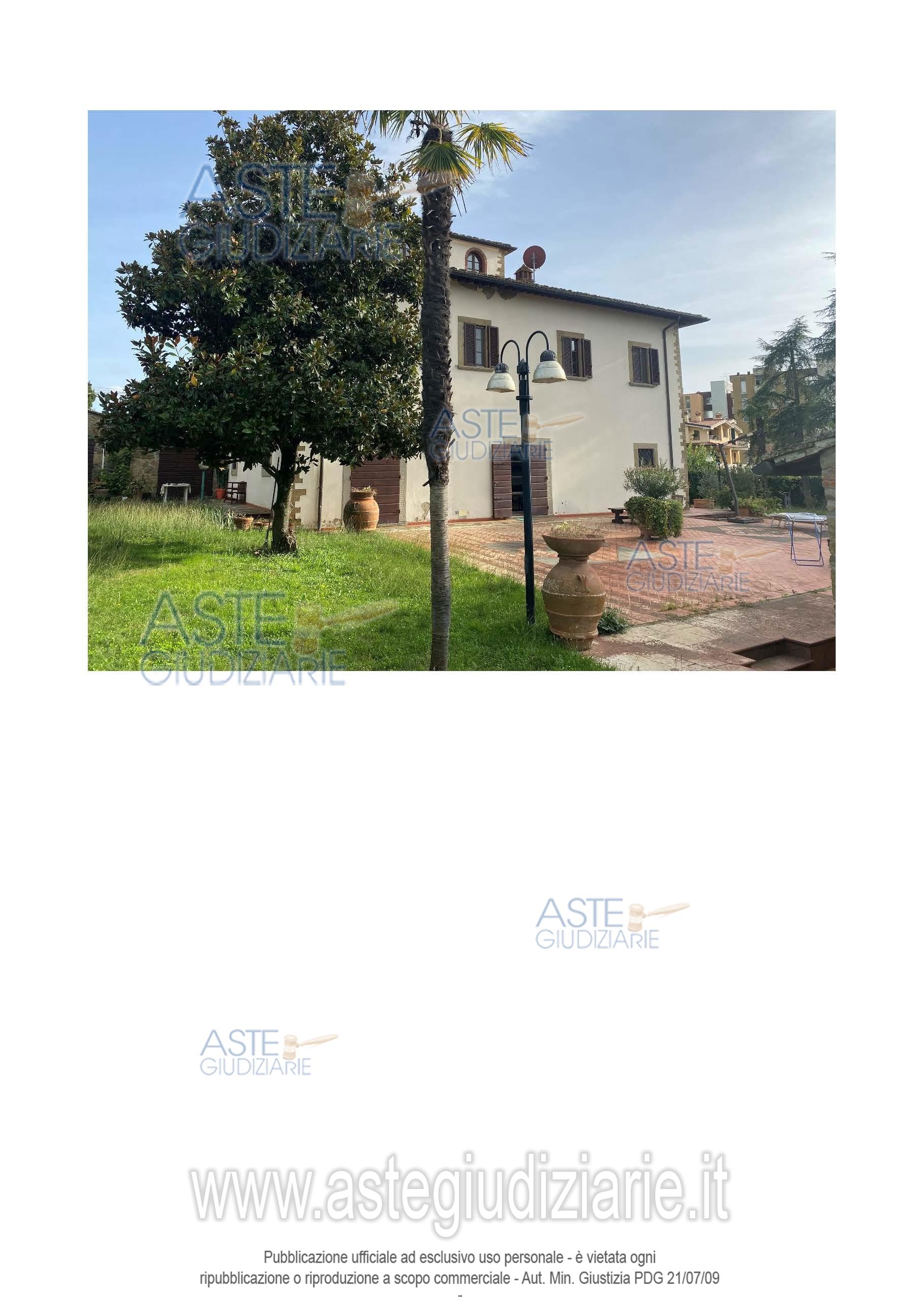 Vendita all'asta Senza incanto, con gara telematica sincrona mista - LOTTO UNICO: L’immobile è costituito da una villa singola ristrutturata nel 2010, dalla superficie commerciale di 590,00 mq., per il diritto di piena proprietà e per l’intero. Il compendio immobiliare, compreso tra il centro storico della città e la periferia, è costituito da un fabbricato principale adibito ad abitazione familiare sviluppantesi in 3 piani fuori terra, da un fabbricato adibito a garage, da un fabbricato denominato “Pluriuso” e, infine , amplia pertinenza destinata a giardino, il tutto recintato. Prezzo base € 817.920,00 (offerta minima € 613.440,00). Data vendita 15/04/2026 ore 14:00. Professionista delegato alla vendita Dott. Luigi D'elisiis - Email "LDELISIIS@DELPRO.IT"; Cell. 3355419147; Tel. 3355419147. Custode Giudiziario Istituto Vendite Giudiziarie Arezzo - Siena - Email "visite.ivg@gmail.com"; Cell. 3397337017; Tel. 0577318111. Rif. Tribunale di Arezzo - Espropriazione immobiliare (cartabia) n. 51/2024