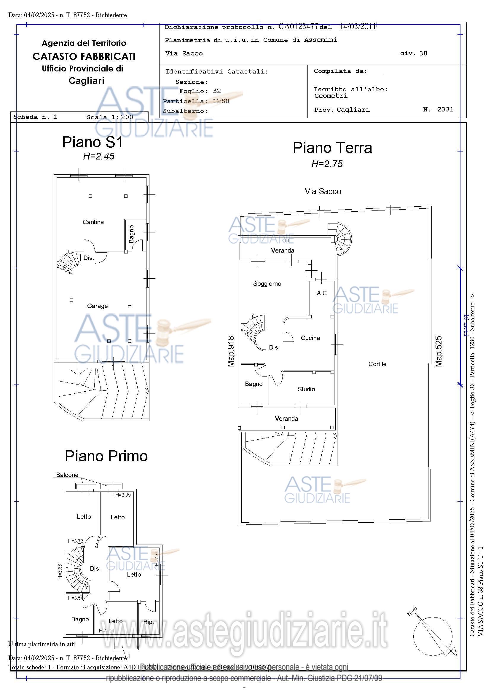Vendita all'asta Senza incanto, con gara telematica asincrona - LOTTO 8: LOTTO 8-Diritti di piena proprietà per la quota di 1/2 Villino unifamiliare, categoria A/2, ubicato in comune di Assemini (CA), con accesso via Sacco n. 38, consistenza 10,5 vani. Prezzo base € 192.500,00 (offerta minima € 144.375,00). Data inizio operazioni di vendita: 04/12/2025 ore 12:00. Giudice Dott. Gaetano Savona. Curatore Dott. Alessia Guerzoni. Rif. Tribunale di Cagliari - Fallimentare (nuovo rito) n. 99/2017