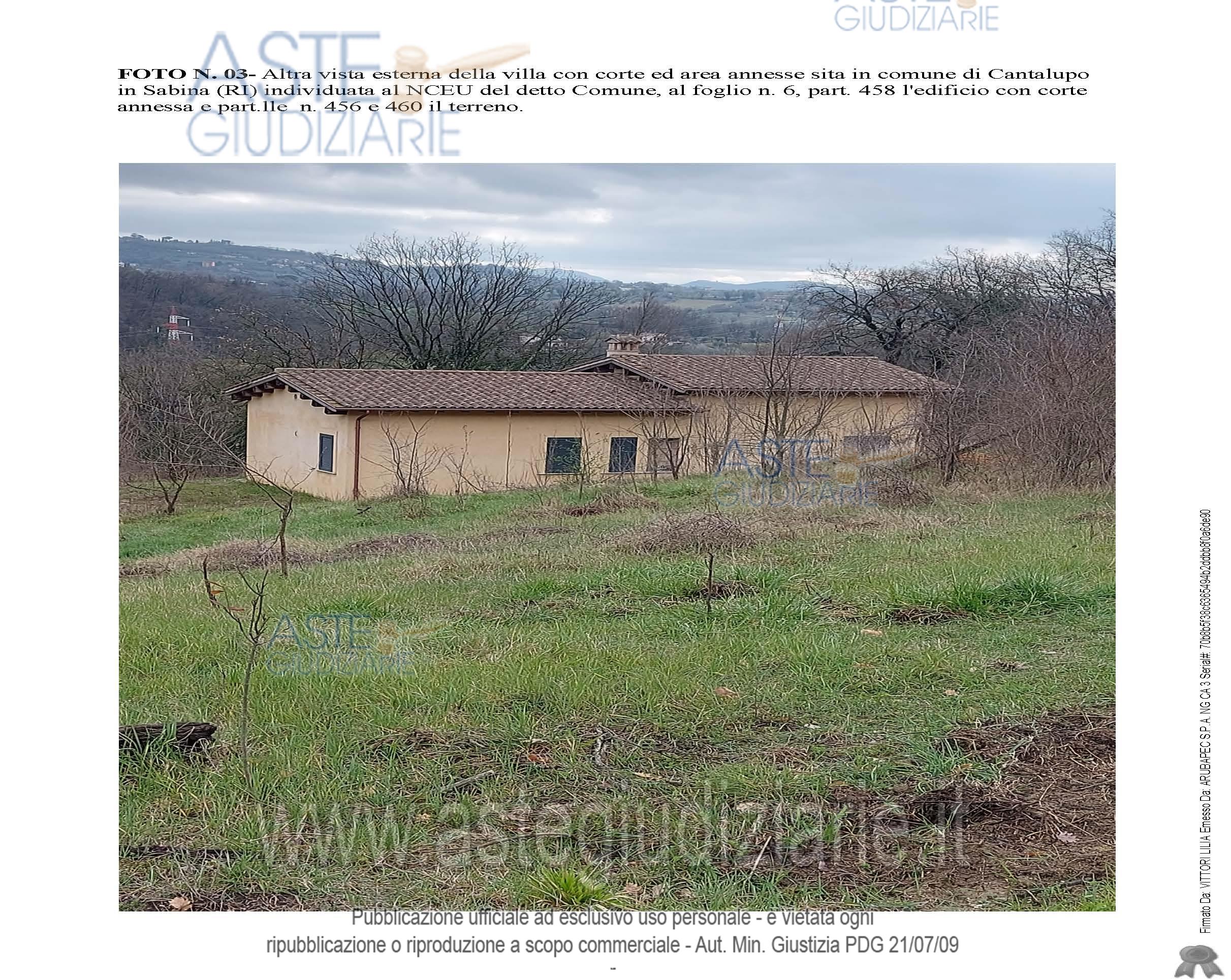 Vendita all'asta Senza incanto, con gara telematica asincrona - LOTTO UNICO: Via Coste snc, piena proprietà della quota di 100/100 di villa singola di recente costruzione ancora da com -pletare nelle sistemazioni esterne, nelle finiture interne e negli impianti, con antistante portico di circa mq 20 e terreno circostante di mq 9490 oltre all'area di sedime del fabbricato ed alla circostante corte . Prezzo base € 75.750,00 (offerta minima € 56.812,50). Data inizio operazioni di vendita: 22/10/2025 ore 09:30. Giudice Barbara Vicario. Professionista delegato alla vendita Avv. Gabriella Carla Giovanna Ortis - Email "gabriella.ortis@tiscali.it"; Cell. 3288635814; Tel. 0746272345. Custode Giudiziario Avv. Gabriella Carla Giovanna Ortis - Email "gabriella.ortis@tiscali.it"; Cell. 3288635814; Tel. 0746272345. Rif. Tribunale di Rieti - Esecuzione immobiliare post legge 80 n. 110/2021