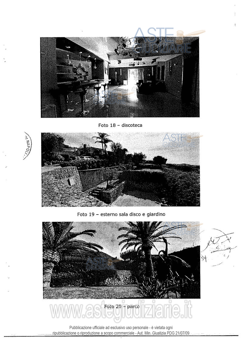 Vendita all'asta Competitiva - LOTTO 2: Compendio immobiliare in Forio (NA), via Acqua Sorgente 5 - loc. Pennanova Stennecchia (superficie circa 4.500 mq.) Il compendio è circondato da un suggestivo panorama (che spazia dalla Baia di San Francesco al Monte Epomeo) ed è costituito di: a) Villa con annessi porticati e sala caldaia con lavanderia; b) altri corpi di fabbrica adibiti a foresteria/dependance, garage, sala fitness e discoteca; c) annesse aree esterne (cortile- viali - parcheggio scoperto); d) piscina; e) terreno circostante. Prezzo base € 2.662.125,00 (offerta minima € 2.662.125,00). Data vendita 10/04/2026 ore 10:00. Giudice Dott. Francesco Paolo Feo. Professionista delegato alla vendita Not. Stefano Boccieri. Rif. Tribunale di Napoli - Nuovo concordato preventivo n. 27/2021