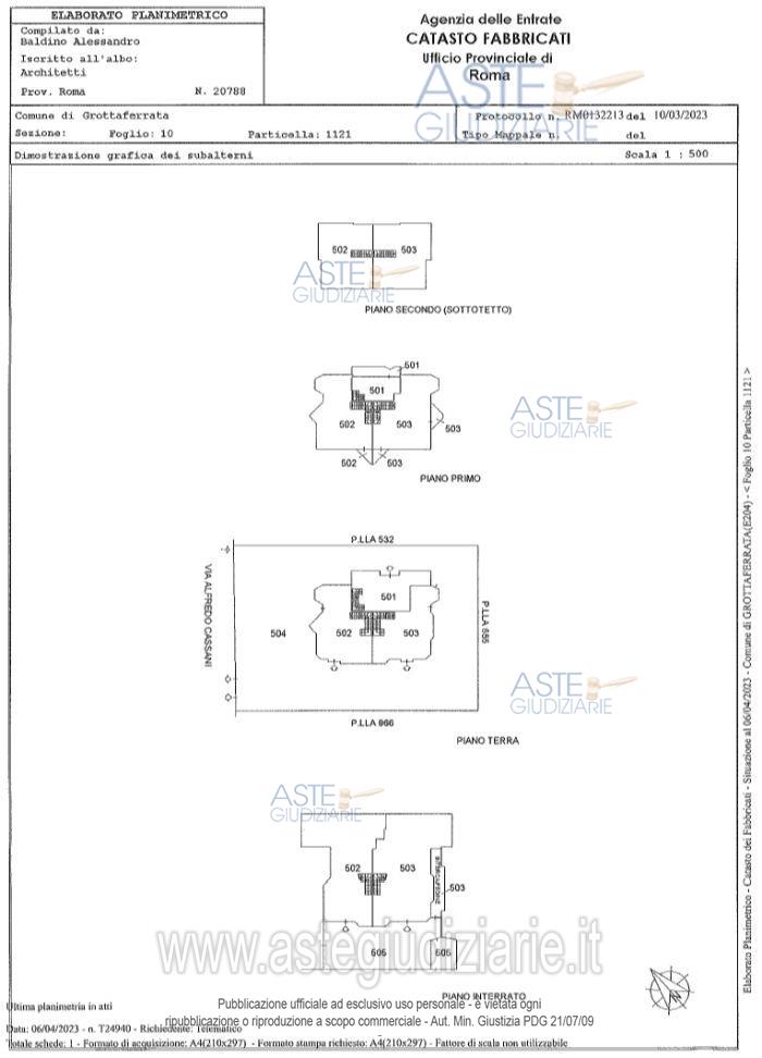 Vendita all'asta Senza incanto, con gara telematica asincrona - LOTTO 1: Appartamento posto ai piani Seminterrato S1- Terra-Primo e Secondo, in villa, con annessa corte ed area di parcheggio coperta di uso comune alle altre unità immobiliari, in Comune di Grottaferrata (RM) identificato al C.F. al foglio 10 part.1121 sub.502. Prezzo base € 353.400,00 (offerta minima € 265.050,00). Data inizio operazioni di vendita: 04/03/2026 ore 10:00. Giudice Dott. Anna Luisa Di Serafino. Professionista delegato alla vendita Avv. Monica Pitzalis. Custode Giudiziario Avv. Monica Pitzalis - Email "pitzalis.avvmonica@alice.it"; Cell. 3459980973. Rif. Tribunale di Velletri - Esecuzione immobiliare post legge 80 n. 274/2022