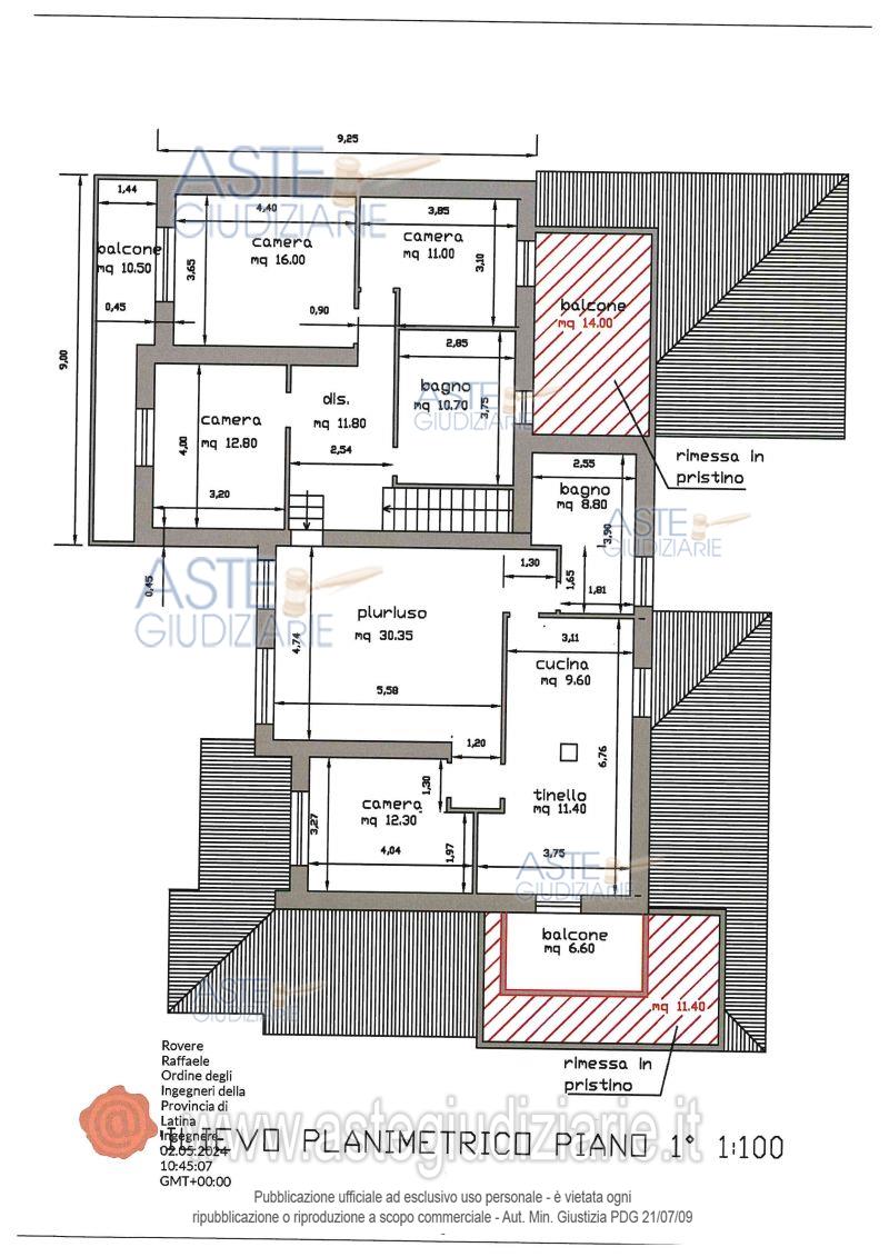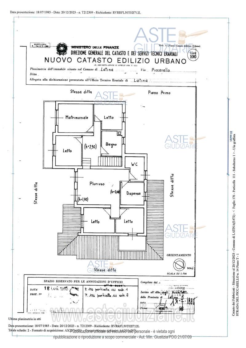 Vendita all'asta Senza incanto, con gara telematica asincrona - LOTTO UNICO:  Lotto unico (costituito dai beni n.1 e n. 2) piena proprietà: Bene n. 1: abitazione in villa di due piani fuori terra con annessa corte a giardino sita in Latina Strada Umberto Nobile n. 14, al NCEU Comune di Latina Foglio 176, part. 111 sub 1 e 2, Piano T-1,Cat. A/7,Classe 4, vani 18,Sup. cat. mq 403, Sup. totale escluse aree scoperte mq. 391, RC. €. 1.812,76; Bene n.2:Terreno mq 1.350, al NCT Comune di Latina foglio 176 part. 160 RD.€. 10,39,RA. 10,46 ( giardino annesso alla villa). Prezzo base € 309.375,00 (offerta minima € 232.031,25). Data inizio operazioni di vendita: 18/11/2025 ore 10:00. Professionista delegato alla vendita Avv. Costanza Taranto - Email "info@studiolegaletaranto.it"; Tel. 0773691230. Custode Giudiziario Avv. Costanza Taranto - Email "info@studiolegaletaranto.it"; Tel. 0773691230.  Rif. Tribunale di Latina - Esecuzione immobiliare post legge 80 n. 65/2023
