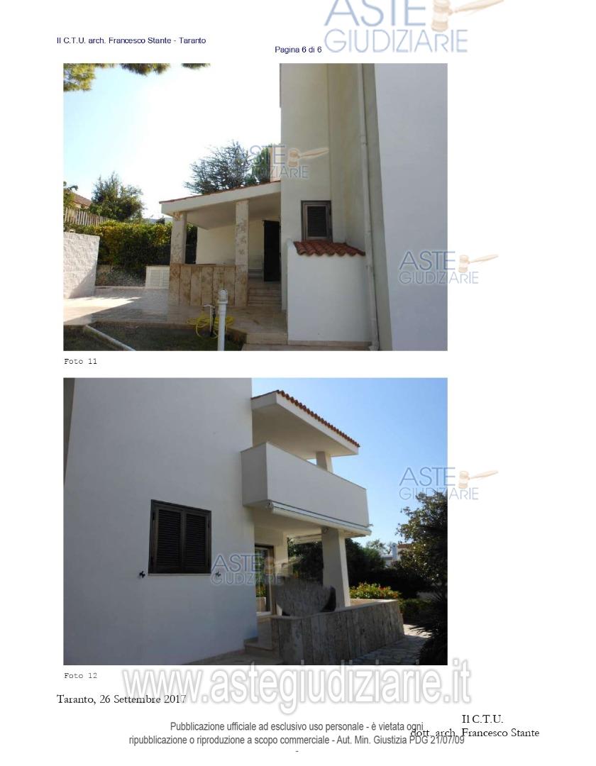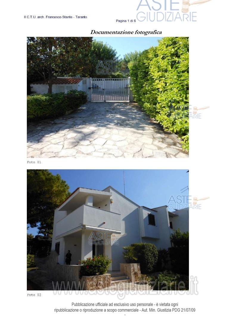 Vendita all'asta Senza incanto, con gara telematica asincrona - LOTTO 1: Diritto di usufrutto della villetta unifamiliare bipiano sita in Leporano (TA) alla Via Messico n.53, articolata in complessivi cinque vani, oltre ai servizi e gli accessori, per una superficie utile interna di circa mq.92, verande e porticati di circa mq.61 e terreno pertinenziale di circa mq.385. Prezzo base € 57.750,00 (offerta minima € 43.313,00). Data inizio operazioni di vendita: 14/01/2026 ore 16:00. Giudice Andrea Paiano. Professionista delegato alla vendita Avv. Saverio Di Fonzo - Email "saveriodifonzo@libero.it"; Cell. 3382952352. Custode Giudiziario Ivg Taranto - Email "ivgta.visiteimmobili@gmail.com"; Cell. 3464950409; Tel. 099-9946442. Rif. Tribunale di Taranto - Esecuzione immobiliare post legge 80 n. 200/2016