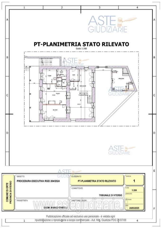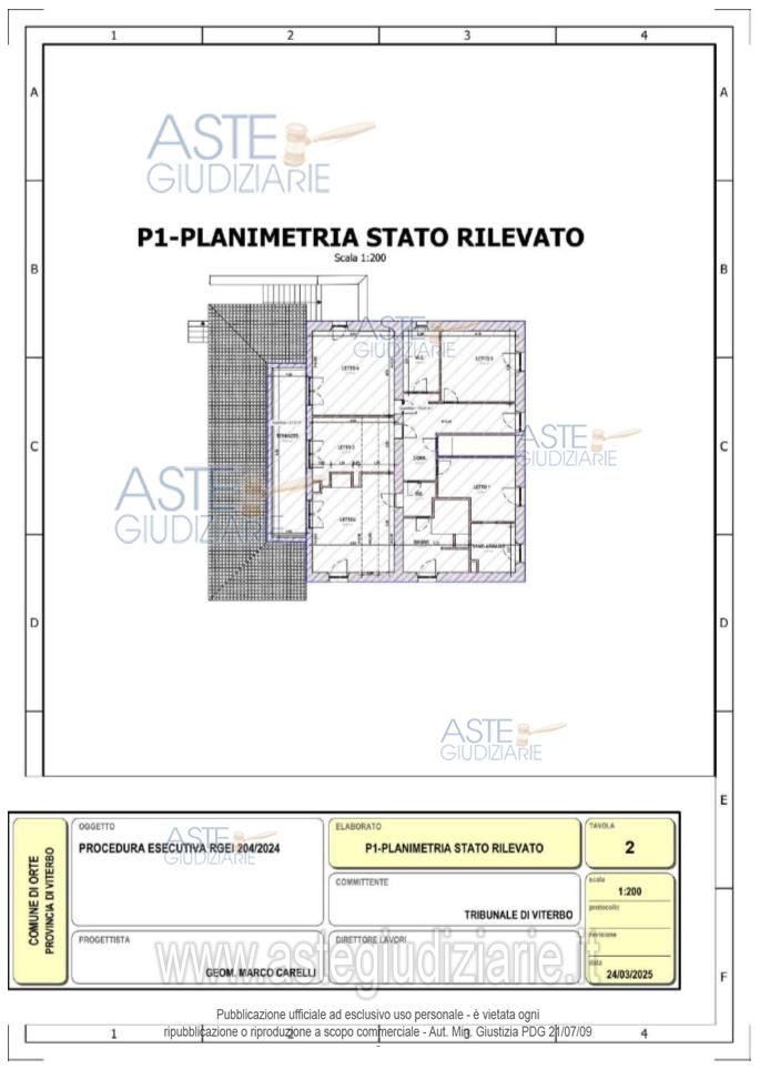Vendita all'asta Senza incanto, con gara telematica asincrona - LOTTO UNICO: Diritto di piena proprietà per la quota dell’intero su fabbricato residenziale sito nel Comune di Orte, Via Le Grazie, piani T-1, censito al NCEU di detto Comune al foglio 34 p.lla 135 (categ. A/8, cl. U, consistenza vani 11,5, superficie abitabile calpestabile mq 295,57, portico mq 36,80, terrazzo mq 18,63, corte esclusiva mq 978,72, rendita euro 1.900,56) con terreno di sedime e pertinenza al NCT foglio 34 p.lla 135 (Ente Urbano, superficie mq 1.235). Stato detentivo del bene: libero. Prezzo base € 249.188,00 (offerta minima € 186.891,00). Data inizio operazioni di vendita: 11/02/2026 ore 12:20. Professionista delegato alla vendita Avv. Deborah Santi - Email "deborahsanti@libero.it"; Cell. 3286978005; Tel. 3286978005. Custode Giudiziario Avv. Deborah Santi - Email "deborahsanti@libero.it"; Cell. 3286978005; Tel. 3286978005. Rif. Tribunale di Viterbo - Espropriazione immobiliare (cartabia) n. 204/2024