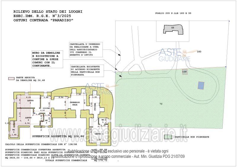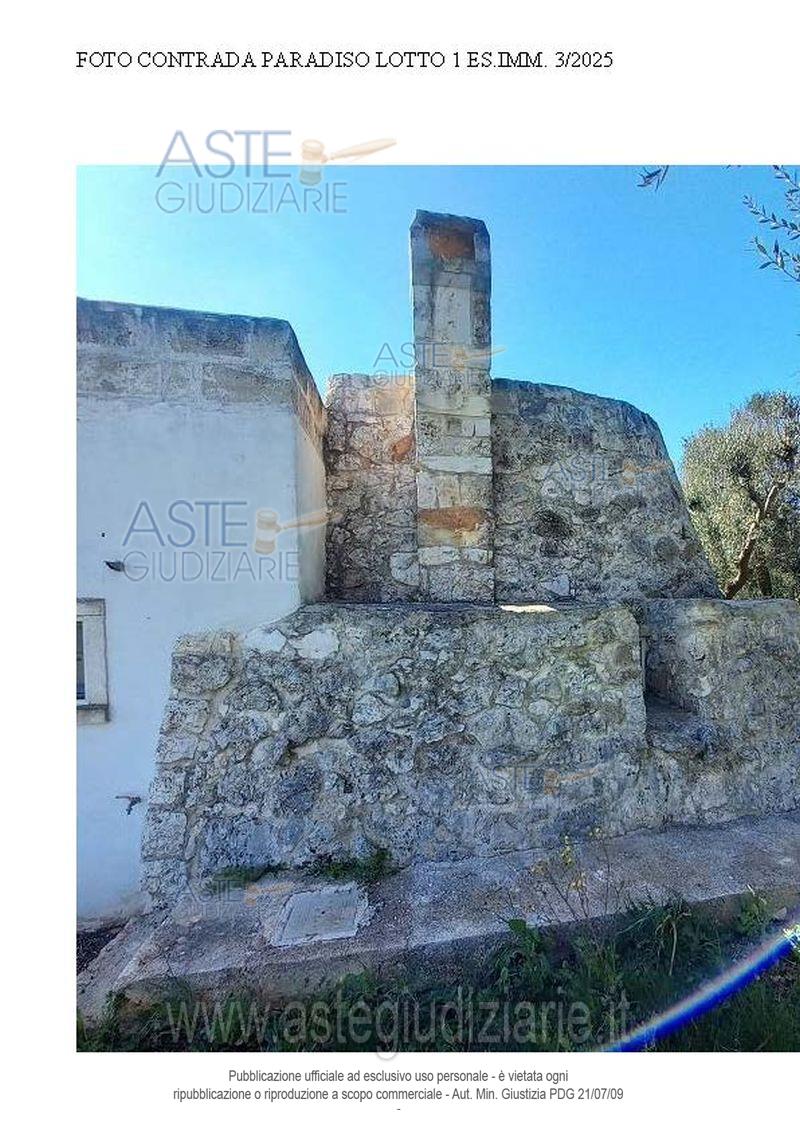 Vendita all'asta Senza incanto, con gara telematica asincrona - LOTTO 01: Villa singola a OSTUNI CONTRADA PARADISO SN, della superficie commerciale di 175,72 mq per la quota di 100/100 di piena proprietà (*** DATO OSCURATO ***) l'immobile e' ubicato in zona agricola, dista circa 6 km dal centro abitato di Ostuni. insiste sulla particella 183 del foglio 205 del comune di Ostuni di superficie mq 3924, destinata a giardino di pertinenza. Prezzo base € 177.919,62 (offerta minima € 133.439,71). Data inizio operazioni di vendita: 25/05/2026 ore 10:30. Professionista delegato alla vendita Avv. Anna De Nitto - Email "annadenitto@libero.it"; Cell. 3497415144. Custode Giudiziario Avv. Anna De Nitto - Email "annadenitto@libero.it"; Cell. 3497415144. Rif. Tribunale di Brindisi - Espropriazione immobiliare (cartabia) n. 3/2025