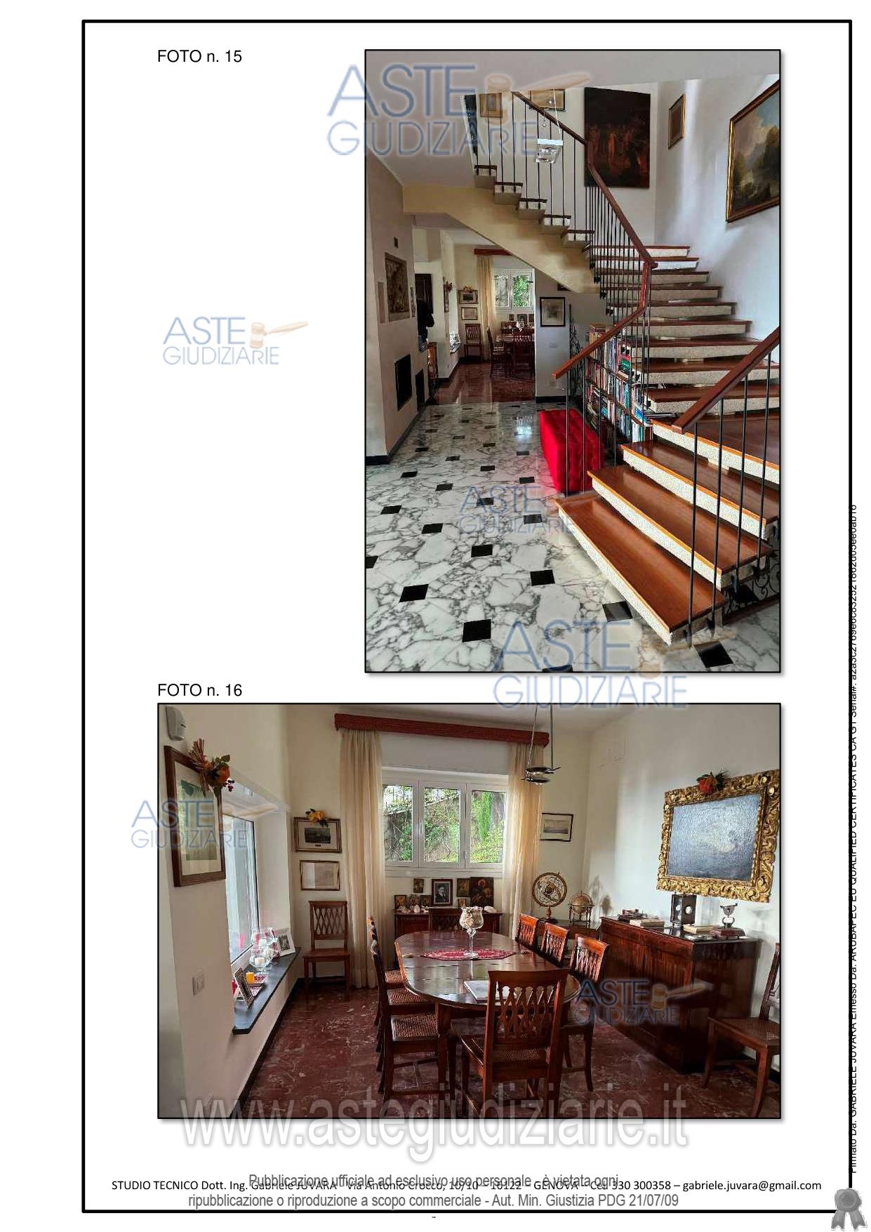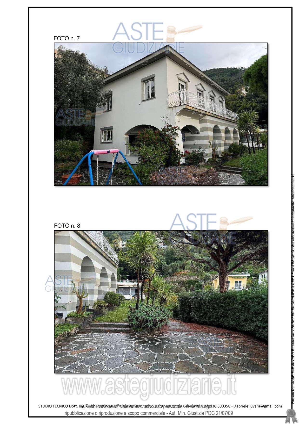 Vendita all'asta Senza incanto, con gara telematica sincrona mista - LOTTO UNICO: Pieve Ligure (GE): unico lotto composto da una villa, un garage e tre terreni siti in Pieve Alta, in un'ottima posizione panoramica con vista mare sul monte di Portofino, a pochi minuti dalla via Aurelia e a breve distanza dalla costa. La villa, circondata dal parco pertinenziale che ne delimita i confini, si sviluppa su tre livelli. Buono lo stato manutentivo degli immobili. Prezzo base € 1.422.750,00 (offerta minima € 1.067.062,50). Data vendita 15/04/2026 ore 14:00. Professionista delegato alla vendita Dott. Laura Benedettini - Email "laura.benedettini@borzianiodone.it"; Tel. 0108979235. Custode Giudiziario Dott. Sovemo Srl - Email "visitegenova@sovemo.com". Rif. Tribunale di Genova - Espropriazione immobiliare (cartabia) n. 316/2024
