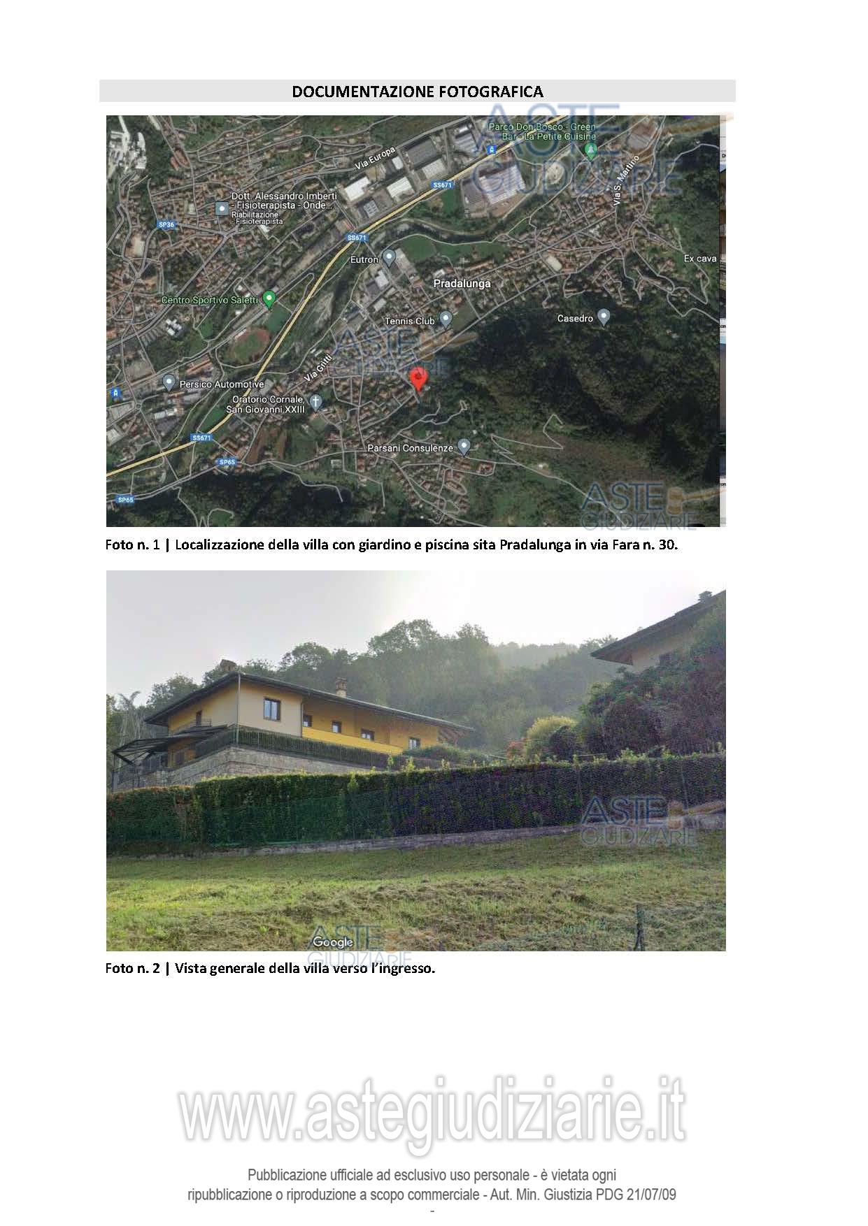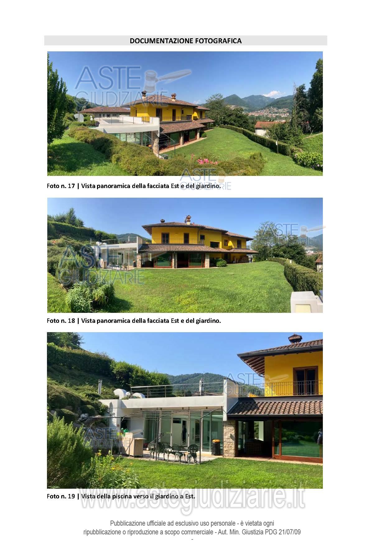 Vendita all'asta Senza incanto, con gara telematica asincrona - LOTTO UNICO: Abitazione in villa con giardino e piscina. Prezzo base € 638.365,10 (offerta minima € 478.773,83). Data inizio operazioni di vendita: 19/05/2026 ore 16:30. Giudice Dott. Vincenzo Domenico Scibetta. Professionista delegato alla vendita Avv. Claudia Lenzini - Email "claudia.lenzini@studiodivita-lenzini.it"; Tel. 035224074. Custode Giudiziario V.G.C. Srl - Email "immobiliare@ivgbergamo.it"; Tel. 0350763005. Rif. Tribunale di Bergamo - Espropriazione immobiliare (cartabia) n. 252/2024