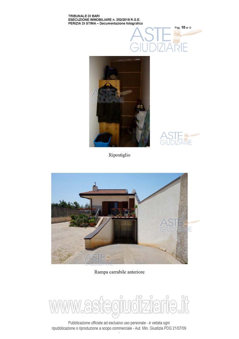 Vendita all'asta Senza incanto, con gara telematica asincrona - LOTTO UNICO: Piena proprietà di fabbricato per civile abitazione, consistente in una casa colonica – residenziale e deposito di attrezzi agricoli, con un piano fuori terra ed un piano seminterrato, composta, secondo quanto catastalmente riportato, da 9,5 vani, con annesso terreno, con superficie, secondo quanto catastalmente riportato, pari a 13 are e 60 centiare. Prezzo base € 116.438,00 (offerta minima € 93.150,00). Data inizio operazioni di vendita: 20/03/2026 ore 16:30. Giudice Dott. Antonio Ruffino. Professionista delegato alla vendita Avv. Tommaso Covella - Email "avvocatocovella@gmail.com". Custode Giudiziario Avv. Tommaso Covella - Email "avvocatocovella@gmail.com". Rif. Tribunale di Bari - Esecuzione immobiliare post legge 80 n. 252/2018