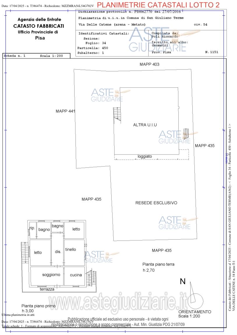 Vendita all'asta Senza incanto, con gara telematica asincrona - LOTTO 2: Villetta ubicata a San Giuliano Terme (PI) - Via delle Catene, 54 - Arena Metato. Prezzo base € 318.000,00 (offerta minima € 238.500,00). Data inizio operazioni di vendita: 22/01/2026 ore 16:00. Giudice Dott. Laura Pastacaldi. Professionista delegato alla vendita Dott. Maurizio Rubbini. Custode Giudiziario Cosimo Erriquez - Email "prenotazionipisa@astagiudiziaria.com"; Tel. 050554790. Rif. Tribunale di Pisa - Espropriazione immobiliare (cartabia) n. 238/2024