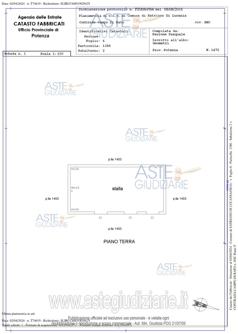 Vendita all'asta Senza incanto, con gara telematica asincrona - LOTTO UNICO: 1000/1000 della proprietà dell’abitazione nel N.C.E.U. al foglio 6, particella 1311 subalterno 1, Categoria A/2, ed al foglio 6, particella 1311 subalterno 2, Categoria F/3, una stalla nel N.C.E.U. al foglio 6, particella 1386 sub. 2, Categoria C/6 e terreno circostante nel catasto al foglio 6, particella 1453, Categoria Seminativo, Classe 3, Superficie catastale 10.185 mq, Rendita dominicale € 10,52, tutti ubicati in Satriano di Lucania (PZ) alla Contrada Campo di Rato, 27. Prezzo base € 167.250,00 (offerta minima € 125.437,50). Data inizio operazioni di vendita: 20/11/2025 ore 11:00. Professionista delegato alla vendita Avv. Domenico Pace - Email "pacedomenic@yahoo.it"; Tel. 097137108. Custode Giudiziario Avv. Domenico Pace - Email "pacedomenic@yahoo.it"; Tel. 097137108. Rif. Tribunale di Potenza - Esecuzione immobiliare post legge 80 n. 3/2023