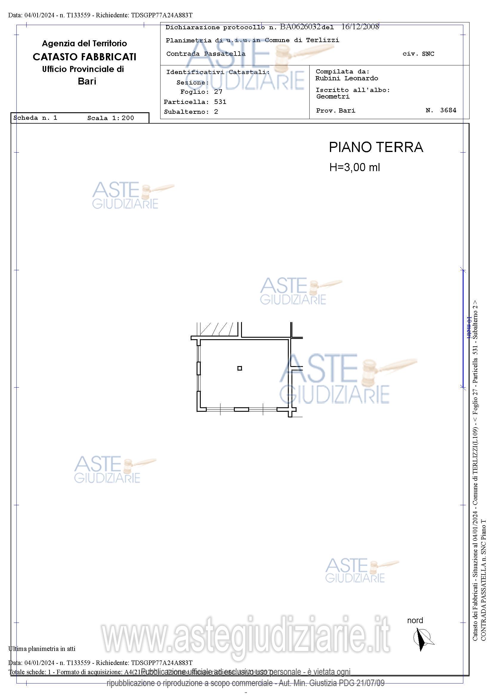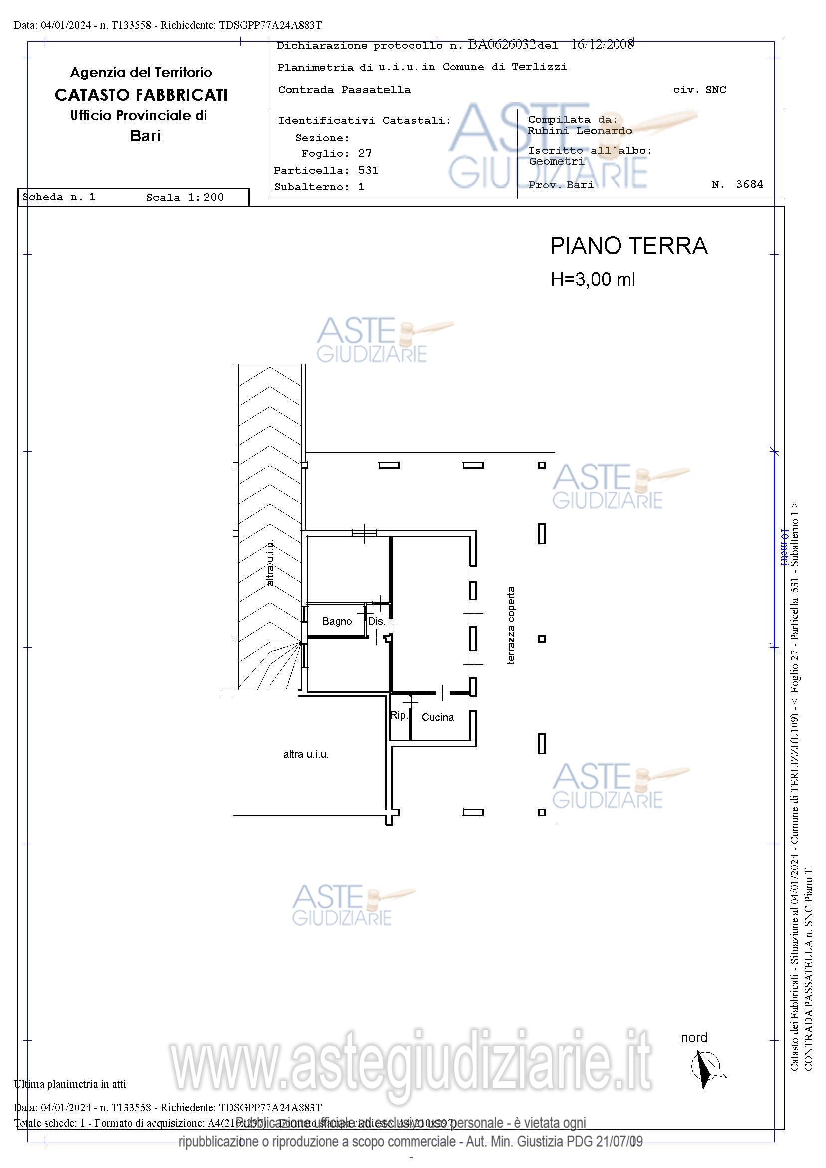 Vendita all'asta Senza incanto, con gara telematica sincrona - LOTTO UNICO: Piena proprietà per la quota di 1000/1000 del lotto unico formato dai seguenti beni:? Bene N° 1 – Terreno ubicato a Terlizzi (BA) - Via Passatella n. 23, piano T? Bene N° 2 – Villetta ubicata a Terlizzi (BA) - Via Passatella n. 23, piano T? Bene N° 3 – Fabbricato rurale ubicato a Terlizzi (BA) - Via Passatella n. 23, piano T – S1? Bene N° 4 - Serra ubicata a Terlizzi (BA) - Via Passatella n. 23, piano. Prezzo base € 181.795,52 (offerta minima € 136.346,64). Data vendita 29/05/2026 ore 11:00. Giudice Dott. Francesca Pastore. Professionista delegato alla vendita Avv. Tommaso D'amore - Email "damoretommaso@gmail.com"; Tel. 0883583453. Custode Giudiziario Avv. Tommaso D'amore - Email "damoretommaso@gmail.com"; Tel. 0883583453. Rif. Tribunale di Trani - Esecuzione immobiliare post legge 80 n. 58/2023