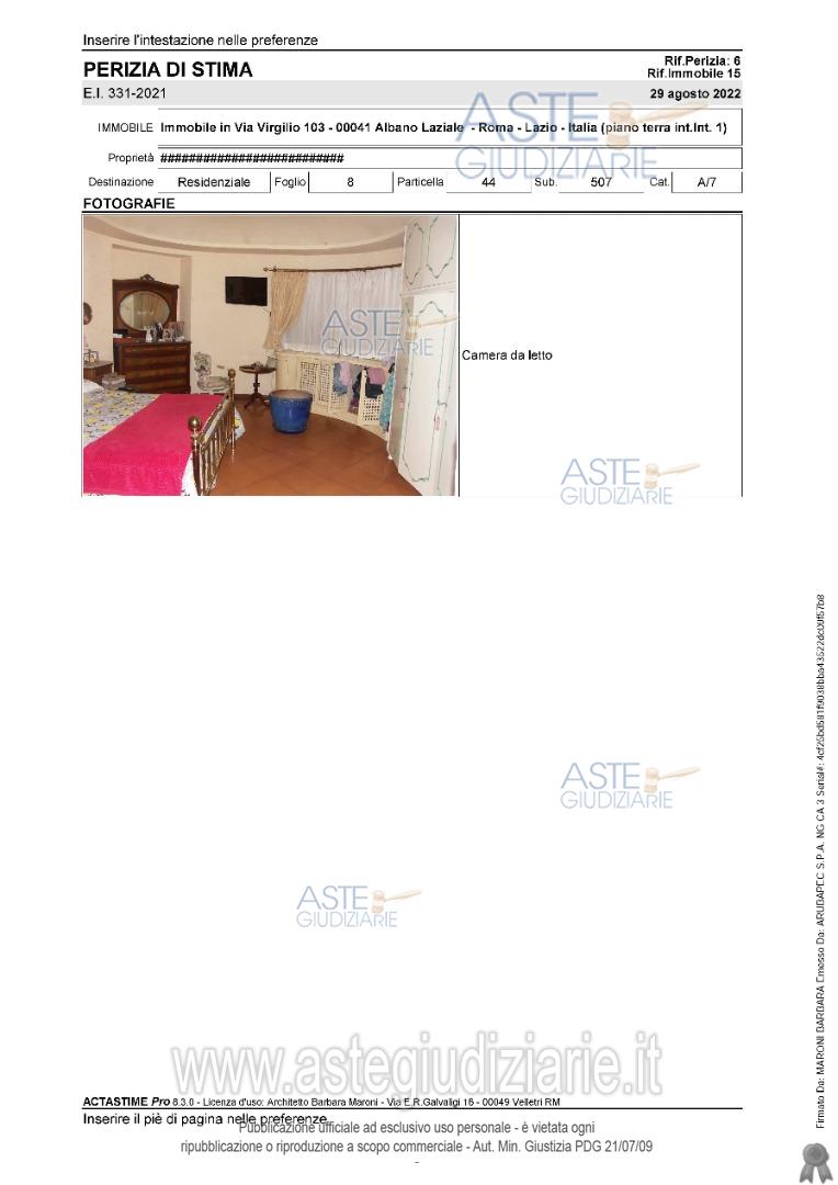 Vendita all'asta Senza incanto, con gara telematica asincrona - LOTTO 1: Porzione di villino e locale garage gravati da diritto di uso a favore di terzo. Prezzo base € 104.625,00 (offerta minima € 78.500,00). Data inizio operazioni di vendita: 26/02/2026 ore 10:30. Professionista delegato alla vendita Not. Francesco Maria De Iorio - Email "studiodeiorio.1@notariato.it"; Tel. 06-96430866. Custode Giudiziario Istituto Vendite Giudiziarie Di Roma - Email "pvp@visiteivgroma.it - immobiliarevelletri@ivgroma.it"; Tel. 0689569801. Rif. Tribunale di Velletri - Esecuzione immobiliare post legge 80 n. 331/2021