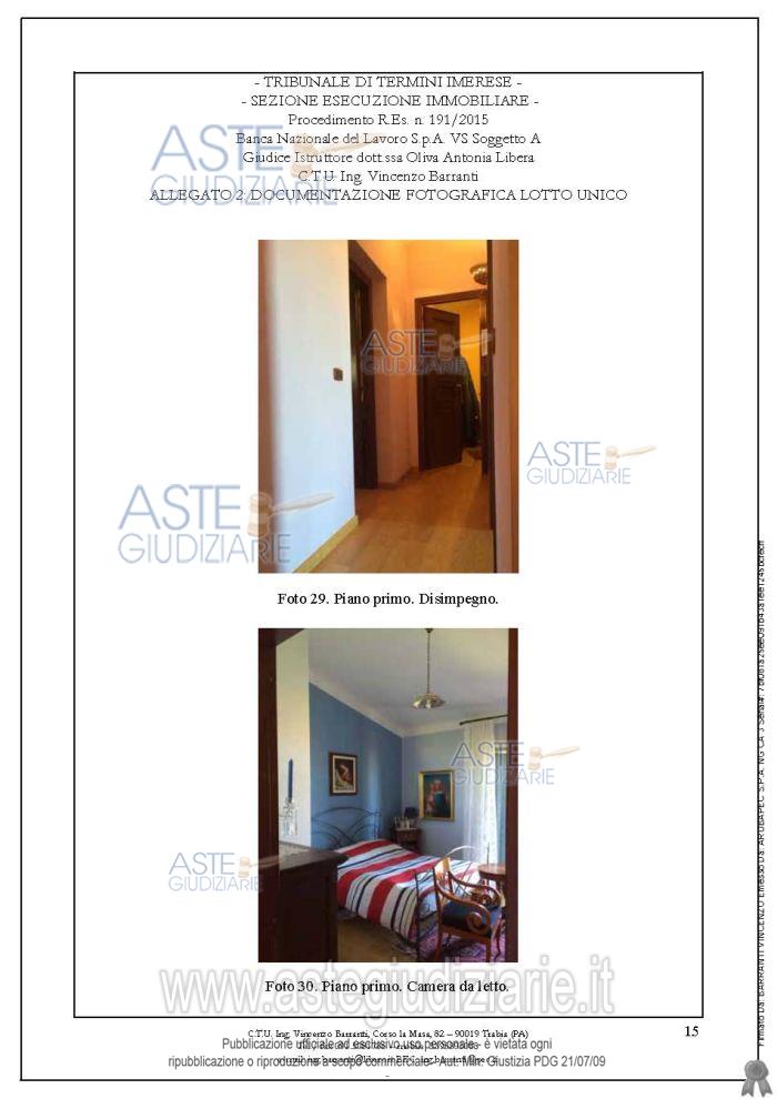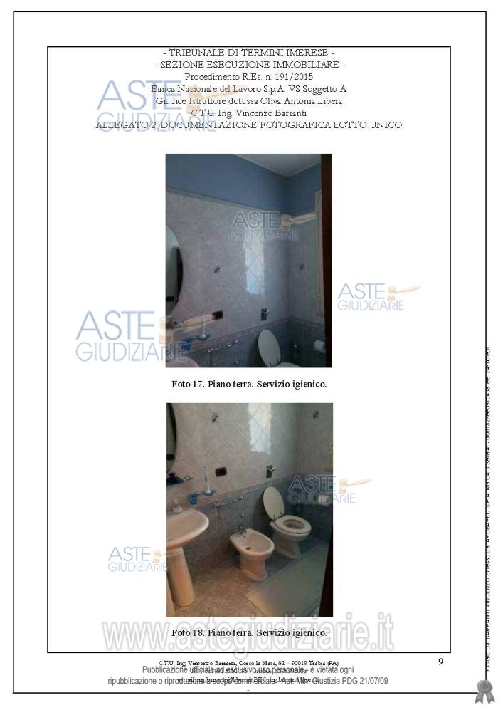 Vendita all'asta Senza incanto, con gara telematica sincrona - LOTTO UNICO: villetta su due elevazioni con terreno di pertinenza. Prezzo base € 157.295,00 (offerta minima € 117.971,25). Data vendita 18/11/2025 ore 15:30. Professionista delegato alla vendita Avv. Roberta Battaglia - Email "robertabattaglia1968@gmail.com"; Tel. 0918141032. Custode Giudiziario Avv. Roberta Battaglia - Email "robertabattaglia1968@gmail.com"; Tel. 0918141032. Rif. Tribunale di Termini Imerese - Esecuzione immobiliare post legge 80 n. 191/2015