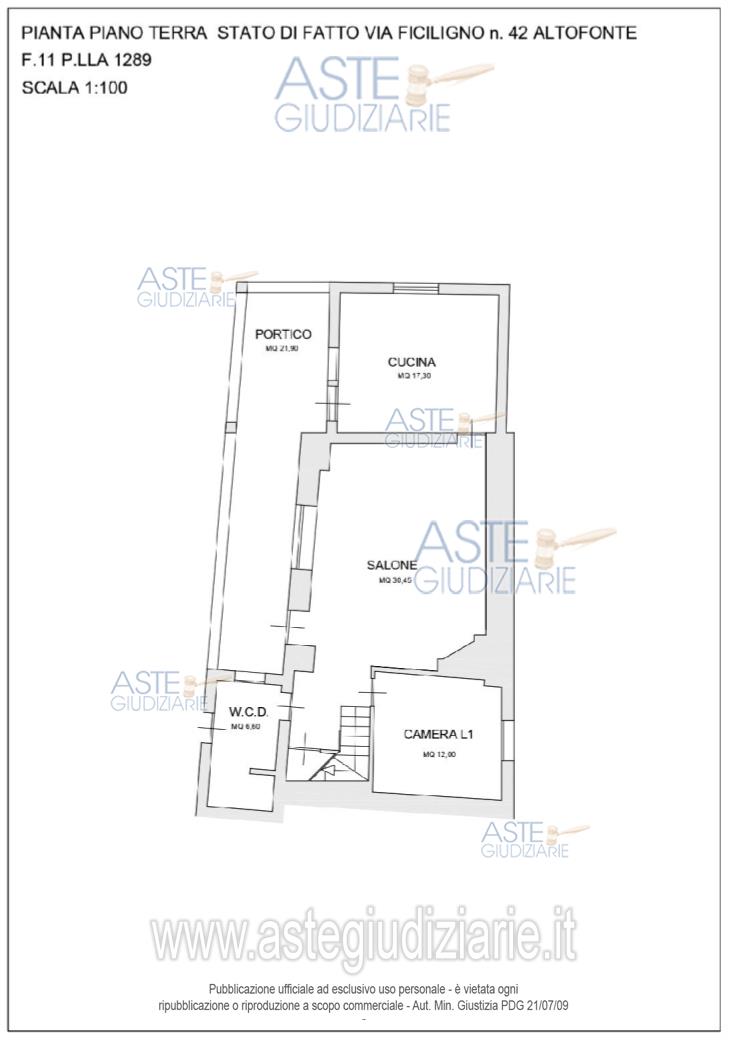 Vendita all'asta Senza incanto, con gara telematica sincrona mista - LOTTO 1: villetta monofamiliare sita in Altofonte, via Ficiligno n. 42, composta, a piano terra, da salone, cucina, wc doccia, ripostiglio, una camera e scala di accesso al primo piano e porticato e, al piano primo, da disimpegno, due camere, wc bagno e terrazzo pavimentato. Prezzo base € 43.820,00 (offerta minima € 32.865,00). Data vendita 28/11/2025 ore 15:45. Giudice Grazia Giuffrida. Professionista delegato alla vendita Avv. Valentina Spera - Email "valentina.spera@virgilio.it"; Cell. 3334121271. Custode Giudiziario Avv. Valentina Spera - Email "valentina.spera@virgilio.it"; Cell. 3334121271; Tel. 3334121271. Rif. Tribunale di Palermo - Esecuzione immobiliare post legge 80 n. 327/2022