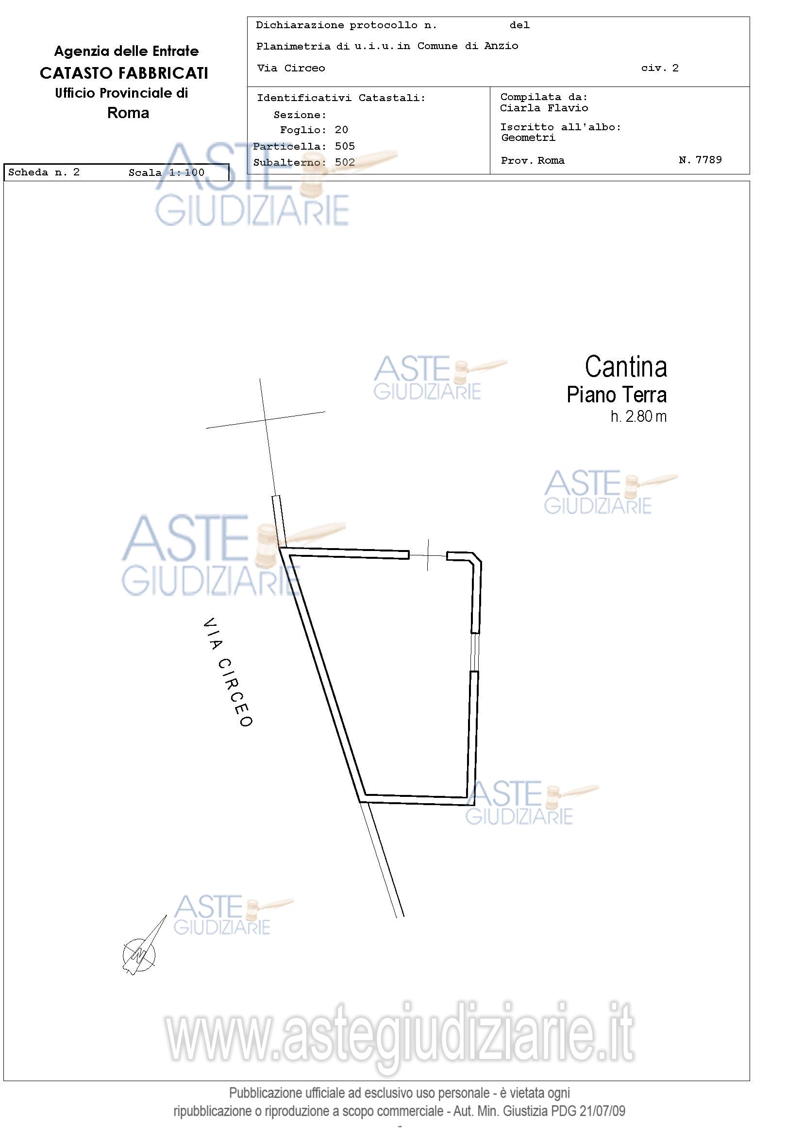 Custode Giudiziario: Avv. Francesca Colaluca - Email "fra.colaluca@gmail.com"; Tel. 06/9781502; Cell. 320/4136711.