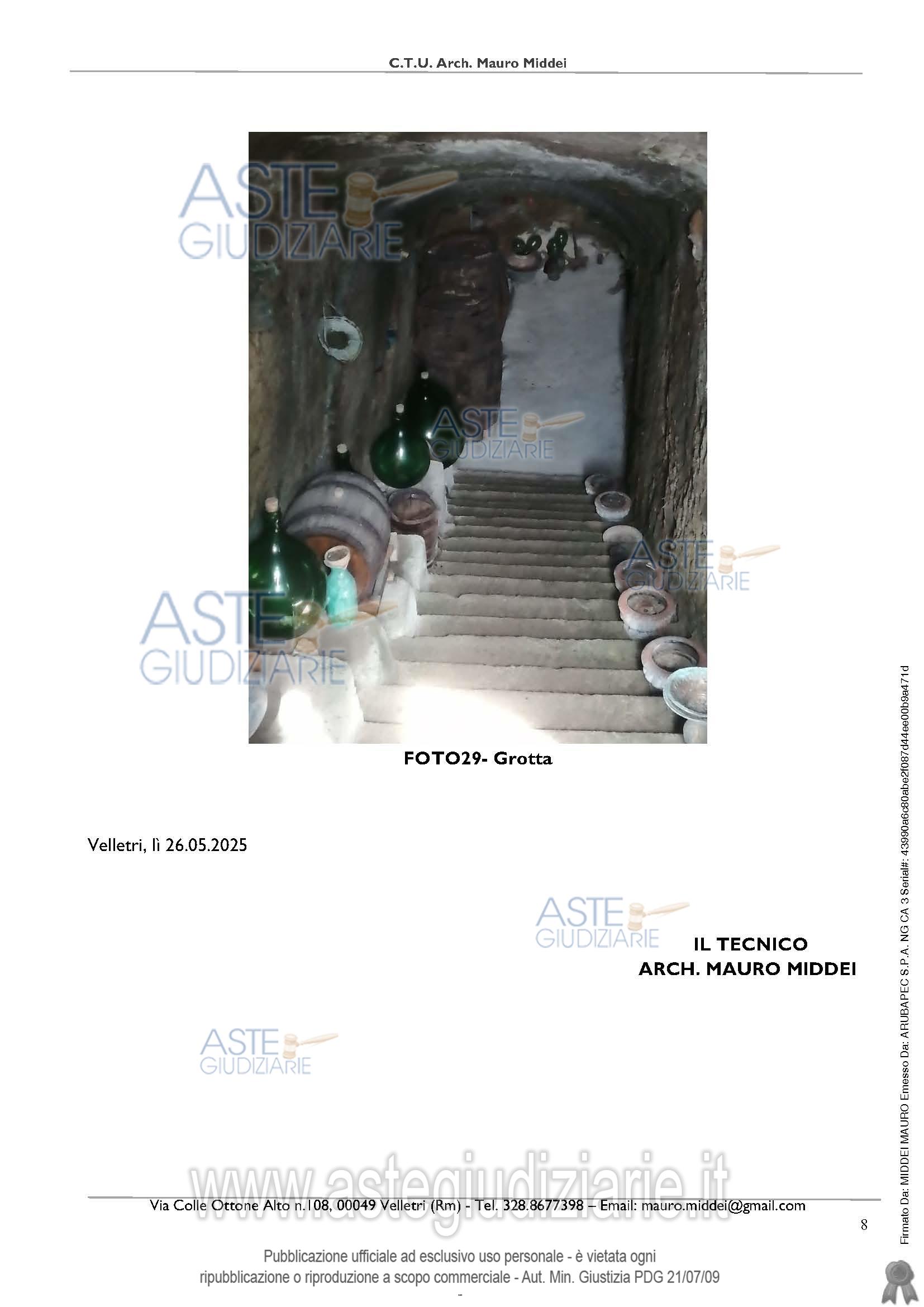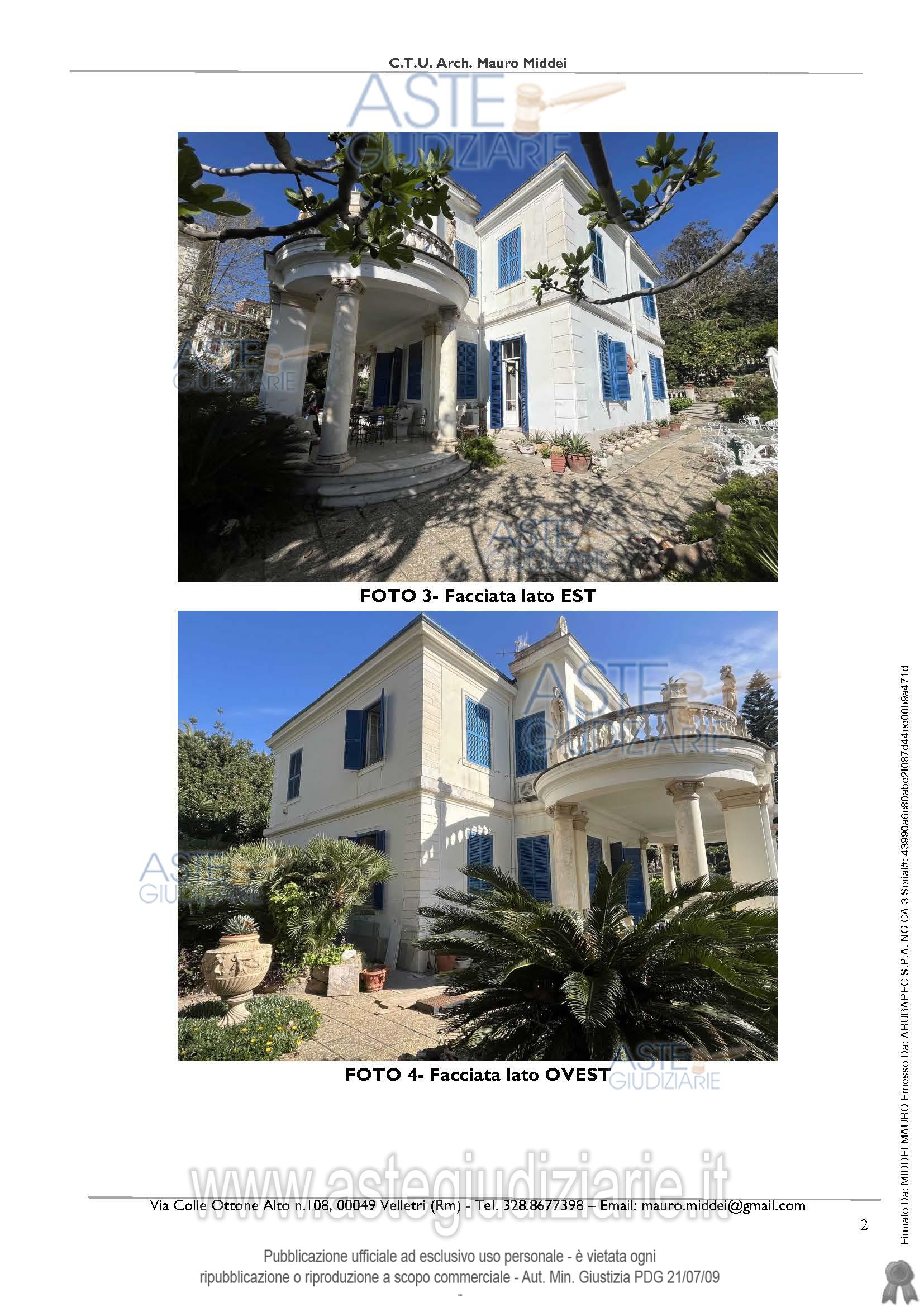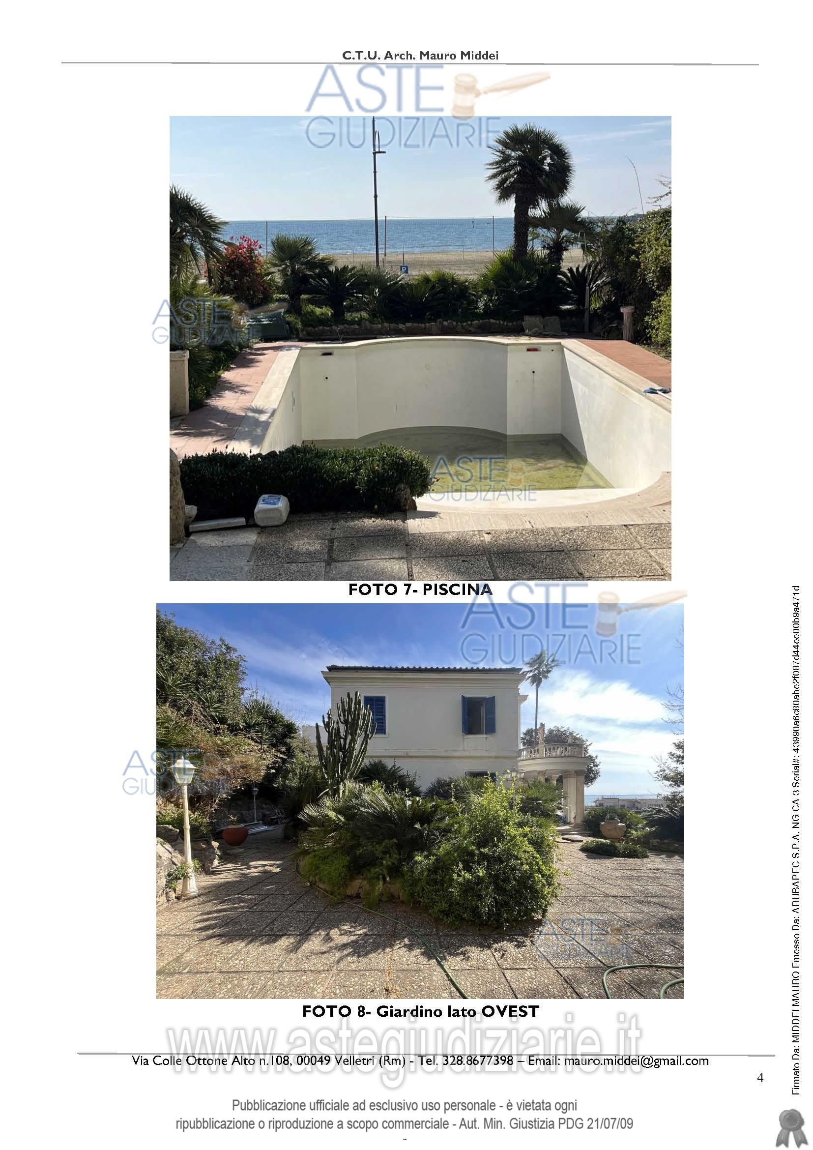 Vendita in attesa dell'emissione del nuovo bando d'asta. LOTTO UNICO: Piena proprietà ad uso residenziale composto da piano terra e primo collegati tra loro da scala interna, con terreno circostante e piscina. Ultimo prezzo base € 1.050.000,00 (offerta minima € 787.500,00). Giudice Francesca Aratari. Professionista delegato alla vendita Not. Carlo Pennazzi Catalani - Email "cpennazzi@notariato.it"; Tel. 0696155449. Curatore Avv. Carlo Carbone - Email "avvcarlocarbone@avvcarlocarbone.it"; Tel. 063222965. Rif. Tribunale di Velletri - Fallimentare (nuovo rito) n. 90/2005