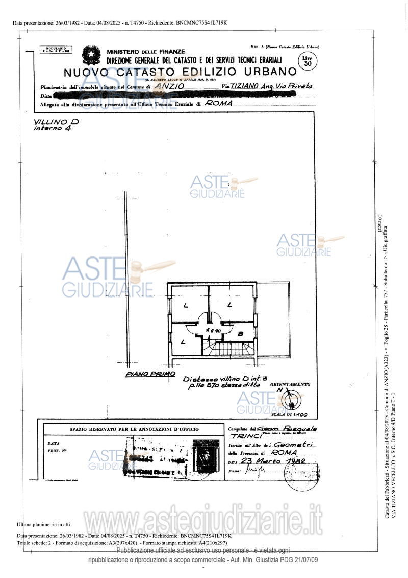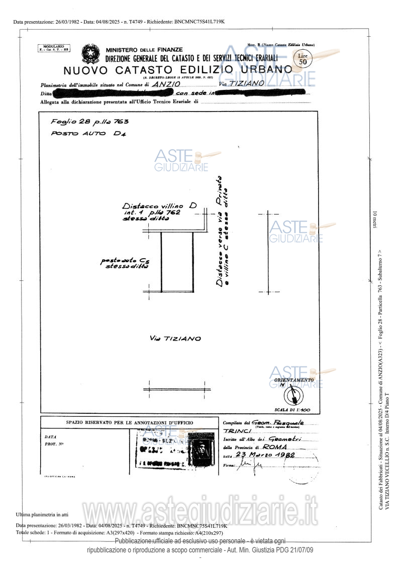 Vendita all'asta Senza incanto, con gara telematica asincrona - LOTTO UNICO: Piena proprietà dell’unità immobiliare sita in Anzio (RM), Località Lavinio Scalo, Via Tiziano Vecellio, 11, costituita da porzione di villetta quadrifamiliare, posta ai piani terra e primo e da posto auto scoperto. Prezzo base € 110.000,00 (offerta minima € 82.500,00). Data inizio operazioni di vendita: 07/05/2026 ore 10:00. Giudice Anna Luisa Di Serafino. Professionista delegato alla vendita Avv. Luigi Calvaruso - Email "info@studiolegalecalvaruso.it"; Tel. 069632281. Custode Giudiziario Avv. Luigi Calvaruso - Email "info@studiolegalecalvaruso.it"; Tel. 069632281. Rif. Tribunale di Velletri - Espropriazione immobiliare (cartabia) n. 126/2025