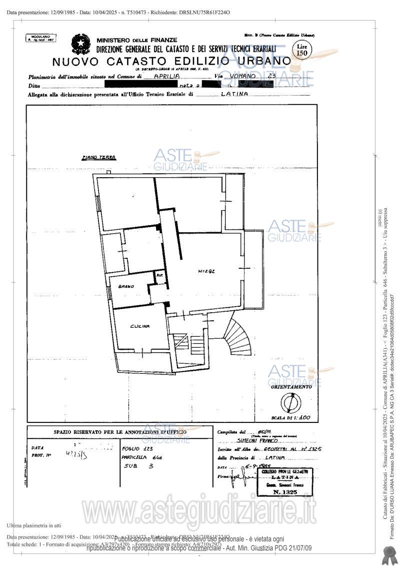 Vendita all'asta Senza incanto, con gara telematica asincrona - LOTTO UNICO: Villetta costituita da un piano interrato e un piano fuori terra, rialzato rispetto al piano dell’area cortilizia. Il villino è circondato da un giardino di circa mq 1266. Sul terreno è stata rilevata la presenza di locali deposito non accatastati, con copertura in eternit. Si rimanda alla CTU per una completa descrizione del bene. Prezzo base € 257.000,00 (offerta minima € 192.750,00). Data inizio operazioni di vendita: 21/04/2026 ore 16:00. Professionista delegato alla vendita Avv. Giuseppe Di Lorenzo - Email "giuseppe@studioangeloni.com"; Tel. 0773695039. Custode Giudiziario Avv. Giuseppe Di Lorenzo - Email "giuseppe@studioangeloni.com"; Tel. 0773695039. Rif. Tribunale di Latina - Espropriazione immobiliare (cartabia) n. 312/2023