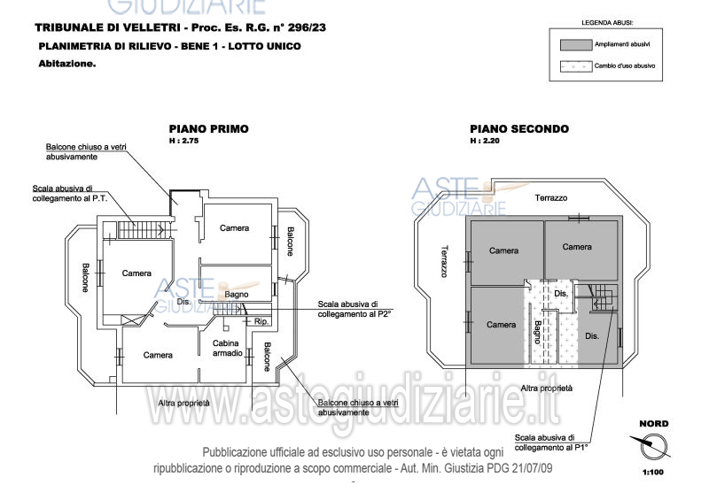 Vendita all'asta Senza incanto, con gara telematica asincrona - LOTTO UNICO: Abitazione in fabbricato di tipo bifamiliare, piano primo e secondo,con annessa corte esclusiva al piano terra, locale deposito piano T, garage, piano S 1 con cantina eannessa rampa di accesso esterna. Prezzo base € 141.000,00 (offerta minima € 105.750,00). Data inizio operazioni di vendita: 20/02/2026 ore 10:30. Professionista delegato alla vendita Avv. Sara Di Geronimo. Custode Giudiziario Avv. Sara Di Geronimo - Email "info@studiodigeronimo.com". Rif. Tribunale di Velletri - Espropriazione immobiliare (cartabia) n. 296/2023