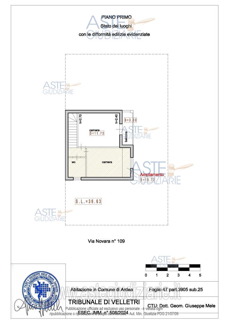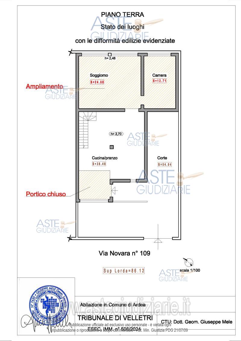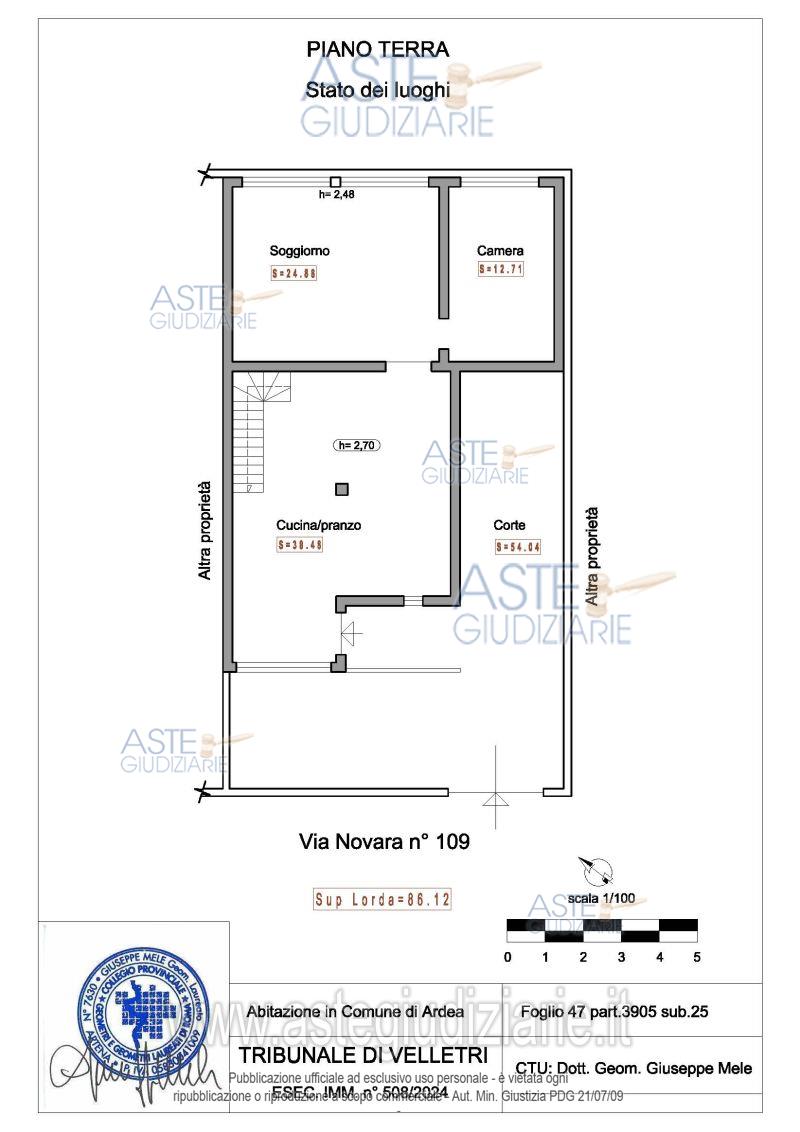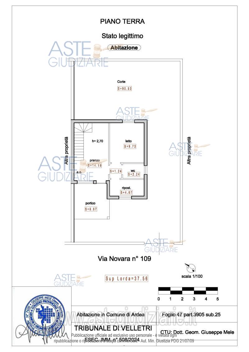 Vendita all'asta Senza incanto, con gara telematica asincrona - LOTTO UNICO: Abitazione in villino ubicato ad Ardea (RM) - via Novara 109, in struttura bifamiliare con corte circostante disposto al piano terra e sottotetto non abitabile. Prezzo base € 118.000,00 (offerta minima € 88.500,00). Data inizio operazioni di vendita: 28/01/2026 ore 09:30. Giudice Dott. Anna Luisa Di Serafino. Professionista delegato alla vendita Avv. Lucio Leoni. Custode Giudiziario Avv. Lucio Leoni - Email "s.l.leoni@libero.it"; Tel. 069632983. Rif. Tribunale di Velletri - Espropriazione immobiliare (cartabia) n. 508/2024