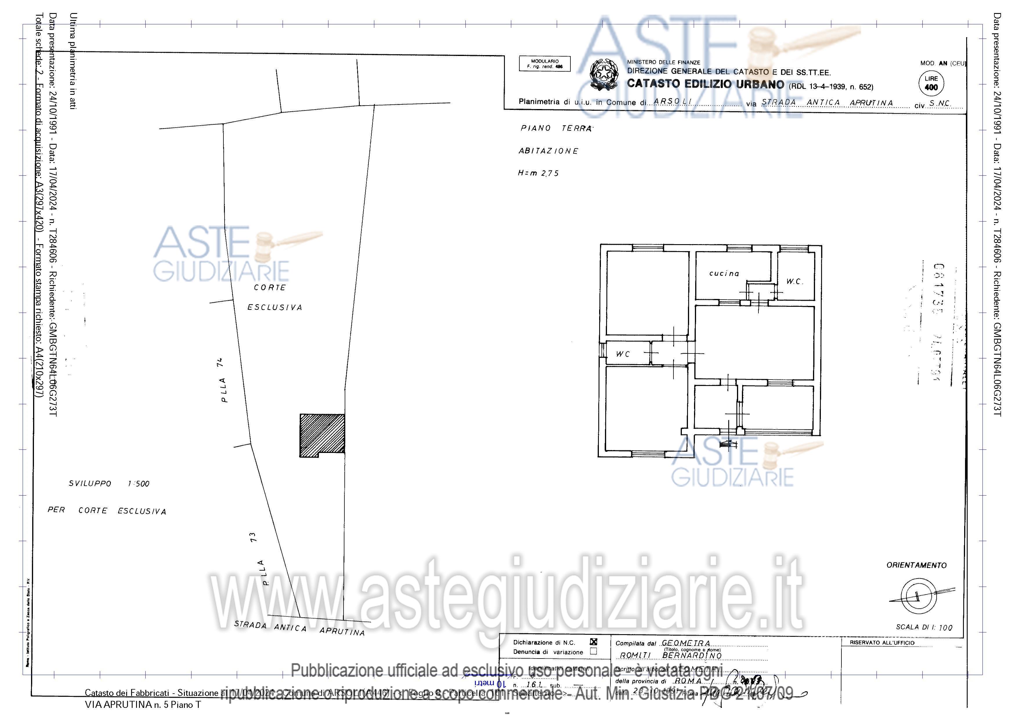 Vendita all'asta Senza incanto, con gara telematica asincrona - LOTTO UNICO: QUOTA di 1/1 del diritto di proprietà di Villino unifamiliare con corte di pertinenza sito nel Comune di Arsoli (RM), in Località Valle Camerina, Via Provinciale Aprutina n. 5 (già Strada Antica Aprutina), distinto in Catasto Urbano al Foglio 8, particella 161 composto da soggiorno, cucina, due stanze da letto, due bagni, due disimpegni, ingresso, veranda e annesso terreno circostante destinato a corte/giardino di mq.2.390. Prezzo base € 19.828,00 (offerta minima € 14.871,00). Data inizio operazioni di vendita: 15/04/2026 ore 11:00. Professionista delegato alla vendita Avv. Daniele Romano - Email "daniele.romano21@libero.it"; Cell. 3289655642. Custode Giudiziario Ivg Di Roma Srl - Email "pvp@visiteivgroma.it"; Tel. 0689569801. Rif. Tribunale di Tivoli - Esecuzione immobiliare post legge 80 n. 368/2023