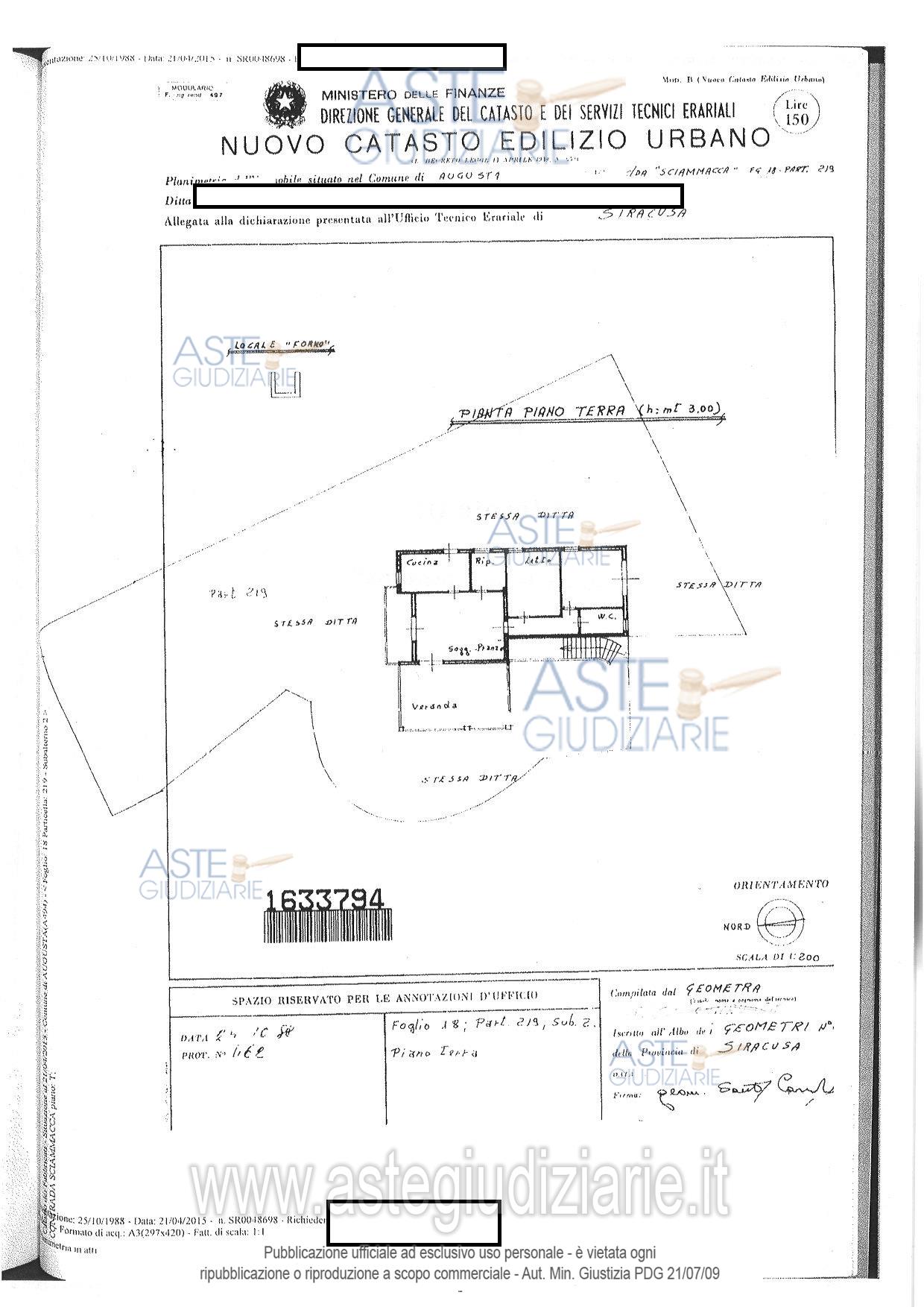 Vendita all'asta Senza incanto, con gara telematica sincrona mista - LOTTO UNICO: Piena proprietà dell'appartamento in villa sito in Augusta, c.da Sciammacca, all'interno del "Residence Baia del Gambero", ubicato al pianterreno, esteso catastalmentemq. 128, con annesso terreno di pertinenza esteso mq. 650 circa. Riportato nel Catasto dei Fabbricati di Augusta al foglio 18, particella 219 sub. 2 e sub. 4, graffati, cat. A/7, cl. 2, vani 5,5, R.C, € 511,29.L'immobile risulta versare in pessime condizioni di manutenzione. Prezzo base € 54.564,26 (offerta minima € 40.923,20). Data vendita 16/01/2026 ore 12:00. Giudice Concita Cultrera. Professionista delegato alla vendita Avv. Valentina Bonfiglio - Email "valentinabonfiglio1976@gmail.com"; Tel. +393394247555. Rif. Tribunale di Siracusa - Contenzioso civile n. 5482/2013