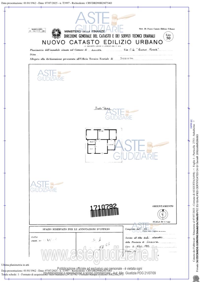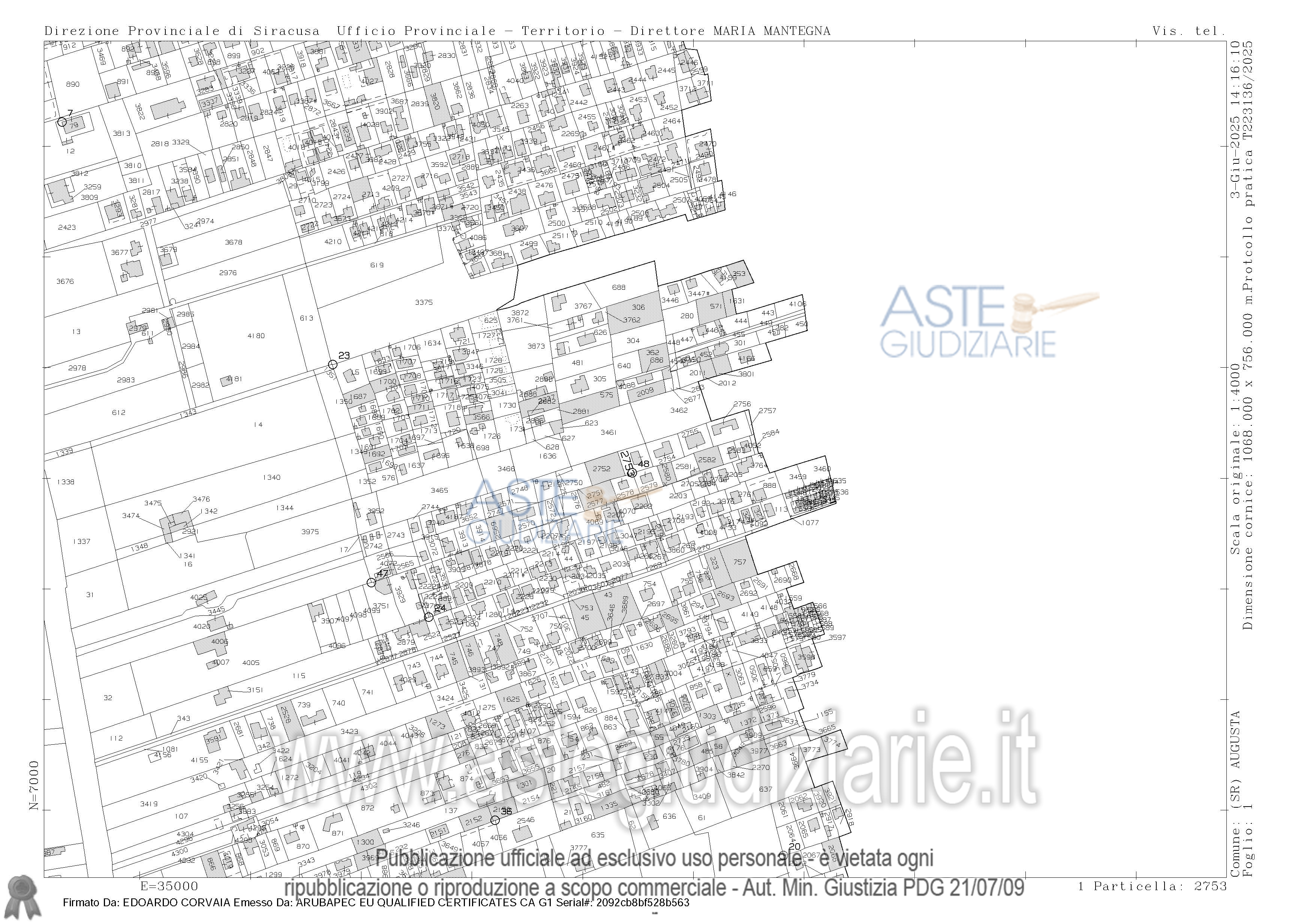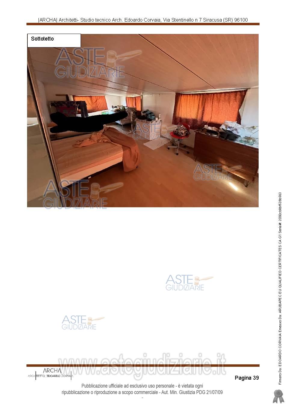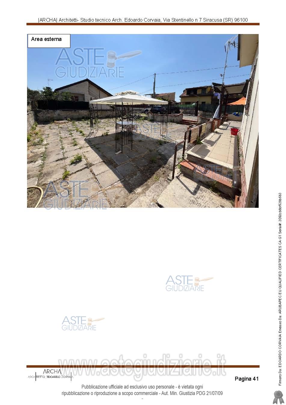 Vendita all'asta Senza incanto, con gara telematica sincrona mista - LOTTO UNICO: 1/1 di proprietà di Villino in Augusta, c.da Agnone Marina, piano T, vani 4 + acc. E corte, nel C.F. al fg. 1 p.lla 2753, z.c. 1, cat. A/7, classe 2, vani 5,5. Per l’immobile risulta presentata domanda di condono edilizio n. 3682/1986, mai completata. Non risulta rilasciato il certificato di agibilità. Prezzo base € 39.700,00 (offerta minima € 29.775,00). Data vendita 26/06/2026 ore 12:00. Giudice Concita Cultrera. Professionista delegato alla vendita Avv. Luca Bianchi - Email "lucbian1973@gmail.com"; Tel. 0931492345. Custode Giudiziario Avv. Luca Bianchi - Email "lucbian1973@gmail.com"; Tel. 0931492345. Rif. Tribunale di Siracusa - Espropriazione immobiliare (cartabia) n. 69/2025
