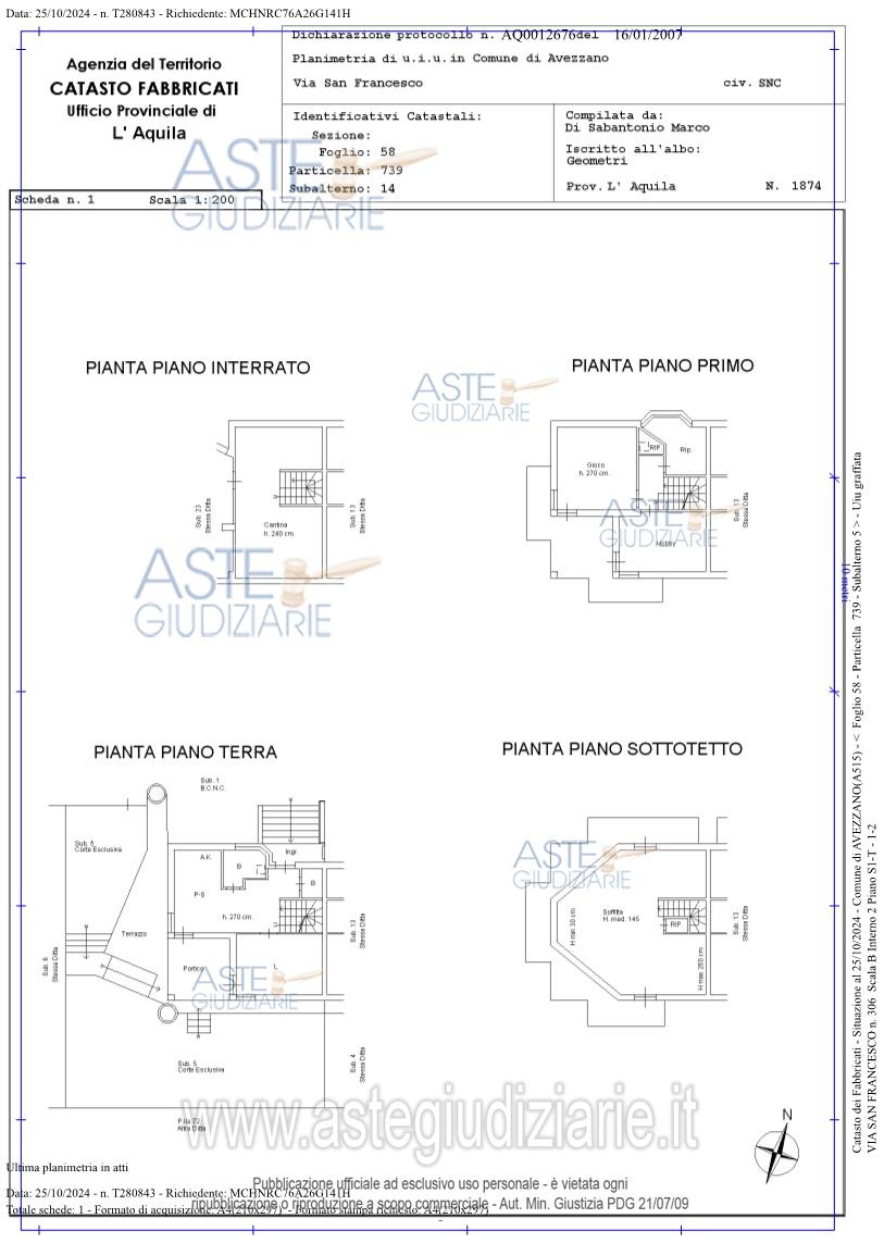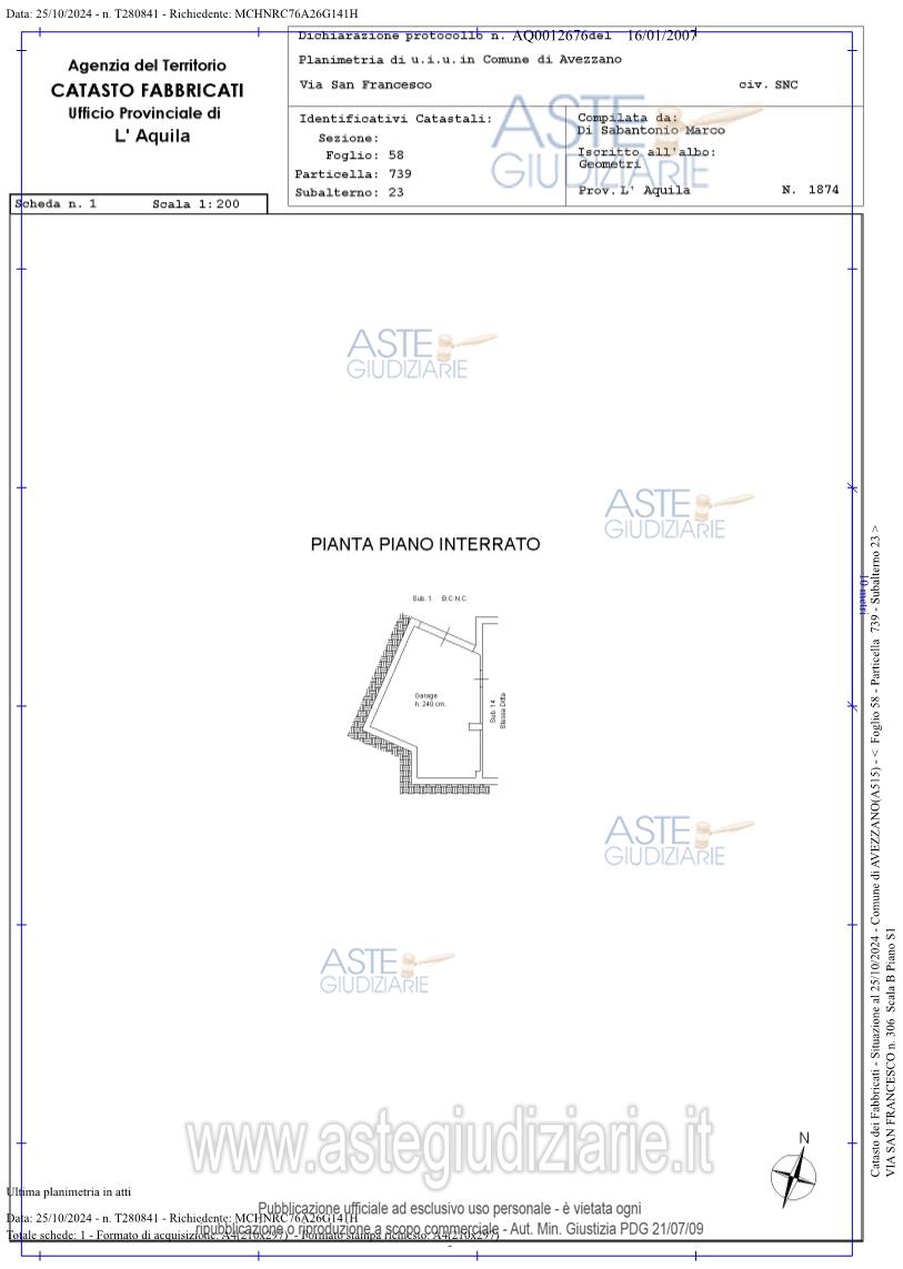 Vendita all'asta Senza incanto, con gara telematica asincrona - LOTTO UNICO: Il lotto è composto da n. 2 beni: Bene 1: Porzione di villino bifamiliare ubicato ad Avezzano (AQ) - Via San Francesco 306, piano S1-T-1-2 con corte esclusiva annessa, sviluppantesi su 4 livelli. L'edificio è sito all'interno di un complesso immobiliare nella zona sud del Comune di Avezzano. Bene 2: Garage ubicato ad Avezzano (AQ) - Via San Francesco 306, piano S1, al piano seminterrato del villino bifamiliare per civile abitazione. L'immobile viene posto in vendita per il diritto di Propietà (1/1). Prezzo base € 50.625,00 (offerta minima € 37.968,75). Data inizio operazioni di vendita: 10/12/2025 ore 16:00. Giudice Francesca Greco. Professionista delegato alla vendita Avv. Maria Pia Croce - Email "mpcroce@tiscali.it"; Tel. 0863455222. Custode Giudiziario Avv. Maria Pia Croce - Email "mpcroce@tiscali.it"; Tel. 0863455222. Rif. Tribunale di Avezzano - Espropriazione immobiliare (cartabia) n. 64/2024