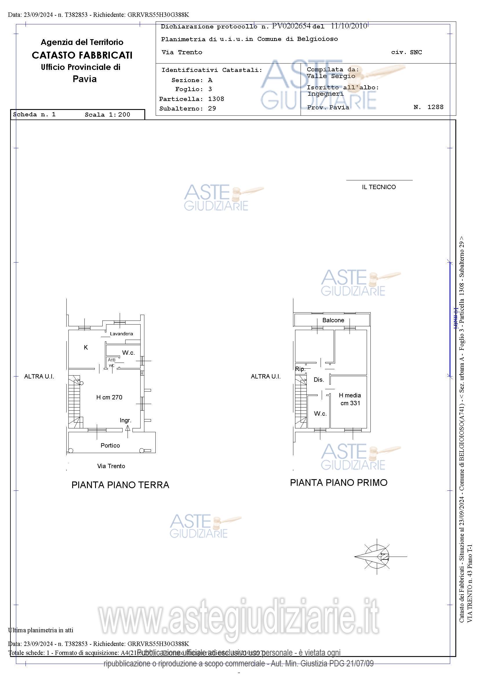 Vendita all'asta Senza incanto, con gara telematica asincrona - LOTTO UNICO: Diritto di proprietà per la quota intera (1/1) di una unità immobiliare ad uso abitativo inserita in un complesso a schiera e distribuita su due piani fuori terra; l'abitazione è composta da un soggiorno, una cucina, un disimpegno, un bagno ed una lavanderia al piano terra, oltre due portici esterni e tre camere da letto, un bagno, un ripostiglio ed un disimpegno al piano primo, oltre ad un balcone. Sono presenti collegamenti verticali interni. Prezzo base € 190.000,00 (offerta minima € 142.500,00). Data inizio operazioni di vendita: 18/11/2025 ore 11:30. Giudice Francesca Paola Claris Appiani. Professionista delegato alla vendita Not. Giorgio Beluffi - Email "gbeluffi@notariato.it"; Tel. 038225269. Custode Giudiziario Istituto Vendite Giudiziarie Di Pavia - Email "prenotazione.visitaimmobile@ivgpavialodi.it"; Tel. 0382539013. Rif. Tribunale di Pavia - Espropriazione immobiliare (cartabia) n. 300/2024
