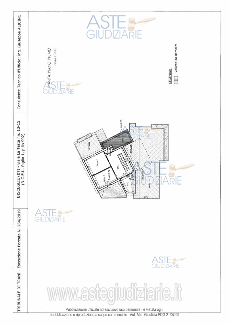 Vendita all'asta Senza incanto, con gara telematica sincrona - LOTTO UNICO: Villa singola indipendente in Bisceglie, di mq 574,54, composta da area scoperta, piano seminterrato, piano terra/rialzato e primo piano oltre lastrico solare. Prezzo base € 554.400,00 (offerta minima € 415.800,00). Data vendita 02/02/2026 ore 09:30. Giudice Diletta Calò. Professionista delegato alla vendita Avv. Vittorio Pondrelli - Email "sba@toffolettodeluca.it". Custode Giudiziario Avv. Vittorio Pondrelli - Email "sba@toffolettodeluca.it". Rif. Tribunale di Trani - Esecuzione immobiliare post legge 80 n. 264/2019
