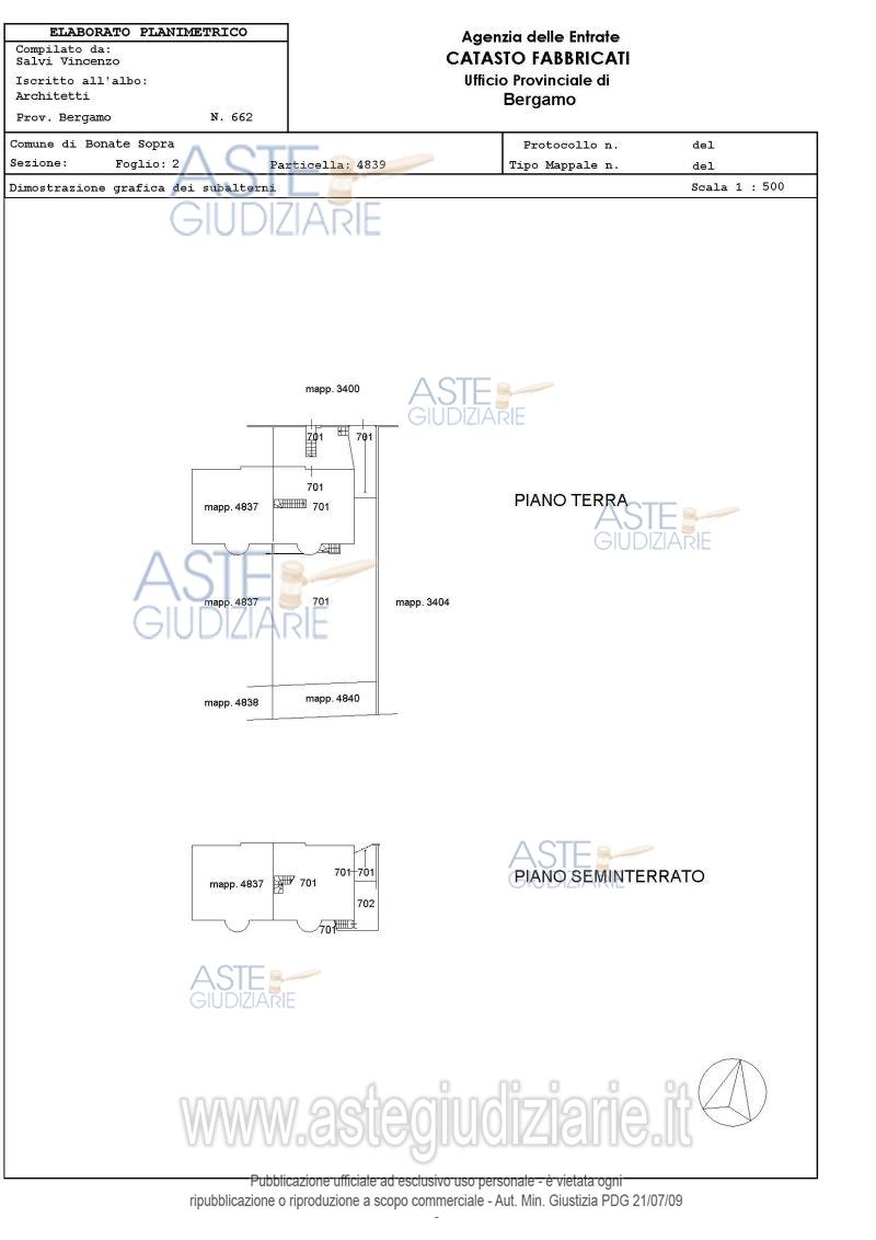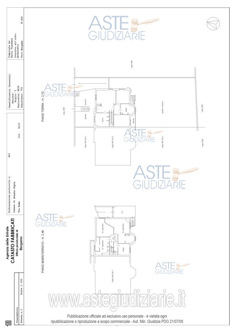Vendita all'asta Senza incanto, con gara telematica asincrona - LOTTO UNICO: Intera piena proprietà di porzione di villetta bifamiliare composta da un piano rialzato eseminterrato che comprende al piano rialzato soggiorno, cucina, due camere e bagno, oltrea balcone e giardino; al piano interrato tre locali e bagno; sottotetto. Autorimessa interrata. Prezzo base € 266.402,40 (offerta minima € 199.801,80). Data inizio operazioni di vendita: 11/12/2025 ore 14:30. Professionista delegato alla vendita Dott. Marco Scuri - Email "segreteria@studioscuri.it"; Tel. 035232207. Custode Giudiziario Dott. Marco Scuri - Email "segreteria@studioscuri.it"; Tel. 035232207. Rif. Tribunale di Bergamo - Esecuzione immobiliare post legge 80 n. 218/2021