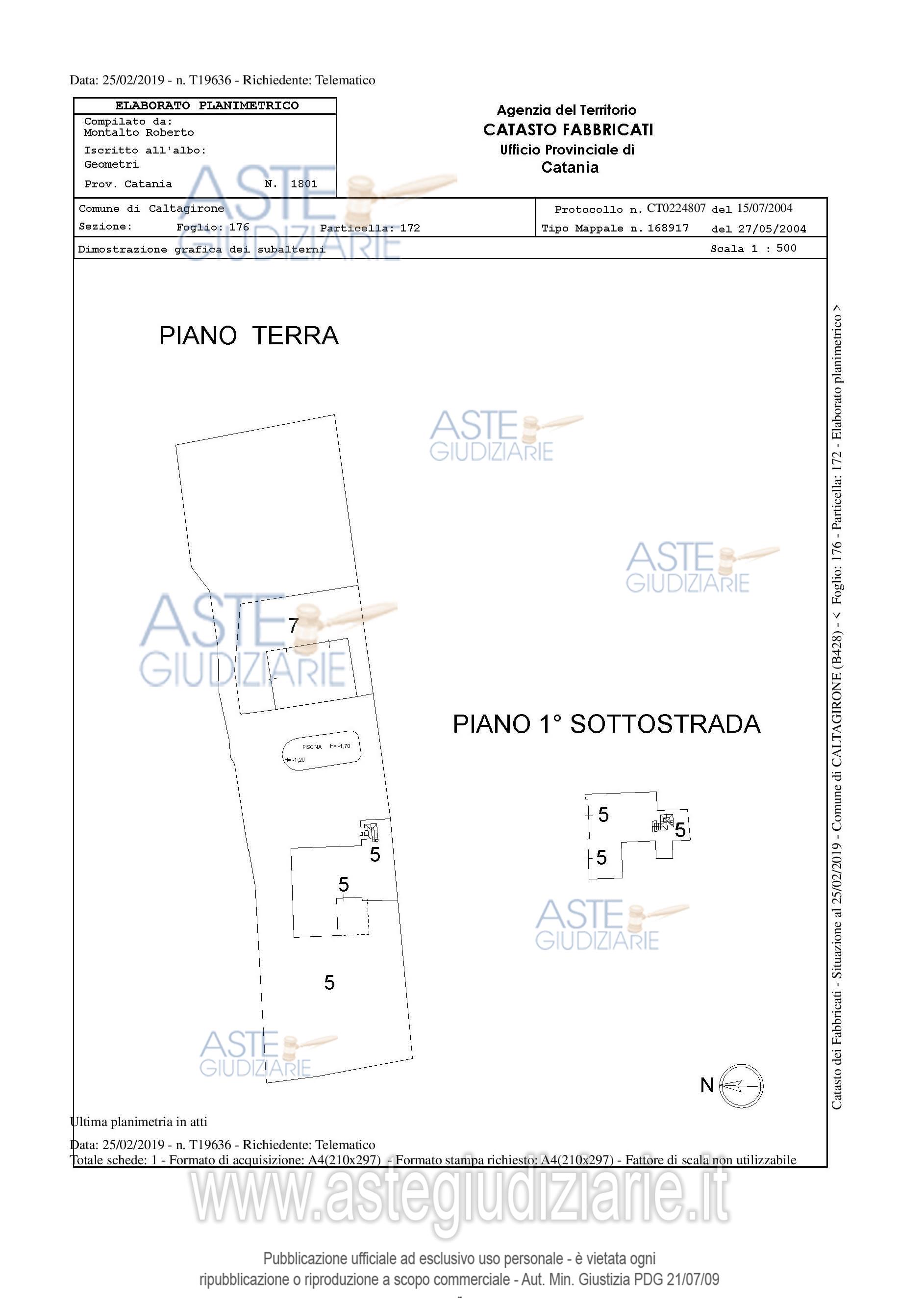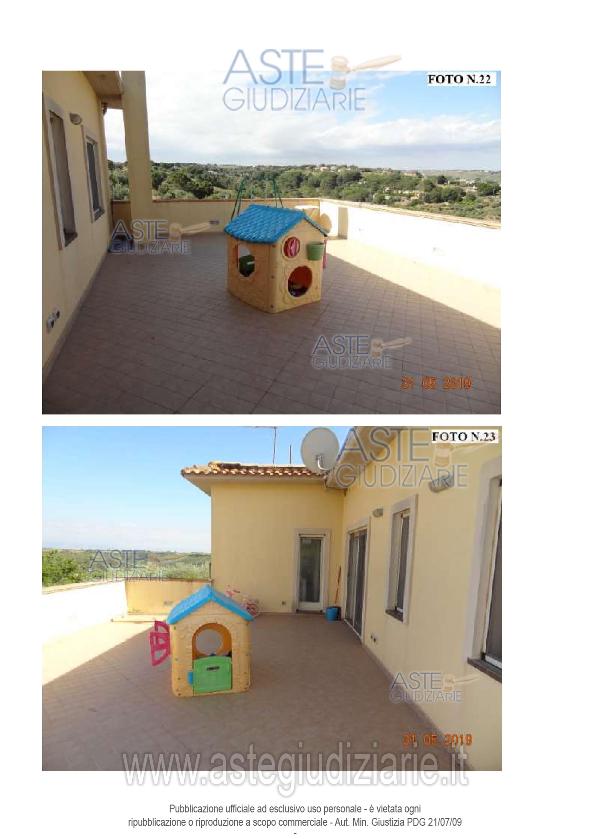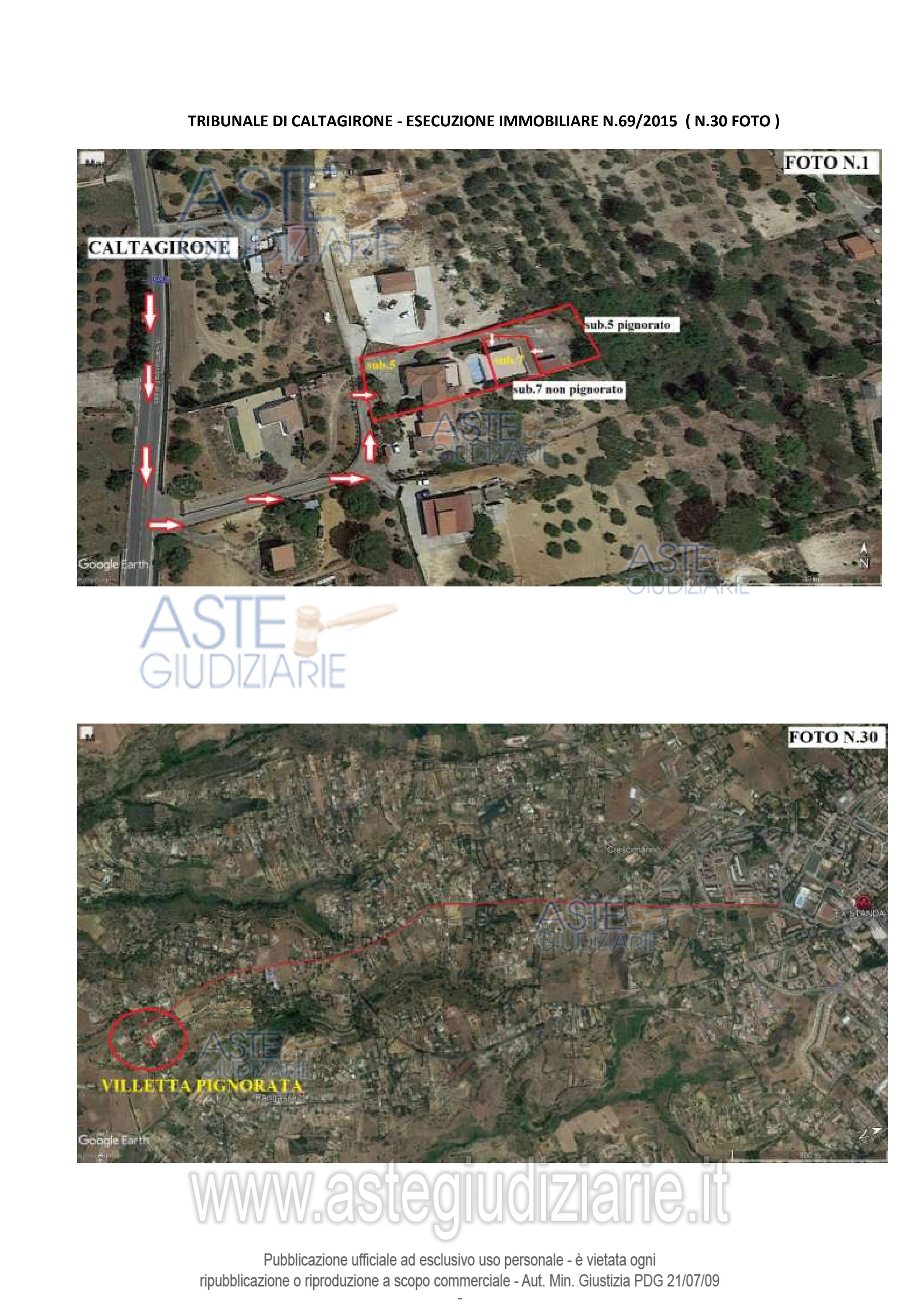 Vendita all'asta Senza incanto, con gara telematica sincrona mista - LOTTO UNICO: Villino a piano terra con piano sottostrada, piscina e corte di vani 9; l’immobile è gravato dal diritto di passaggio per l’accesso all’autorimessa censita alcatasto urbano al foglio 176 particella 172 sub.7 in quanto si trova ubicata all’interno della corte del fabbricato pignorato. Prezzo base € 73.861,87 (offerta minima € 55.396,40). Data vendita 08/05/2026 ore 17:30. Giudice Agata Maria Patrizia Cavallaro. Professionista delegato alla vendita Avv. Salvatore Arancio - Email "avv.arancio@gmail.com"; Cell. 3397094926. Custode Giudiziario Avv. Salvatore Arancio - Email "avv.arancio@gmail.com"; Cell. 3397094926. Rif. Tribunale di Caltagirone - Esecuzione immobiliare post legge 80 n. 69/2015