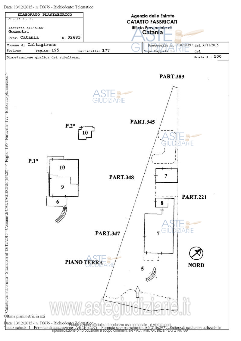 Vendita all'asta Senza incanto - LOTTO UNICO: Piena proprietà dell’immobile sito in territorio di Caltagirone Contrada Favarella, composto da un Villino con annessi fabbricati, piscina, garage e tettoie in legno censito al NCEU del Comune di Caltagirone al foglio 195 part.177 sub 5,6,7,8,9,10 – Part.lle 345, 348 classe energetica G, F. Prezzo base € 128.856,50 (offerta minima € 96.642,40). Data vendita 29/01/2026 ore 18:00. Professionista delegato alla vendita Avv. Agnese Milazzo - Email "milazzoagnese0107@gmail.com". Custode Giudiziario Avv. Agnese Milazzo - Email "milazzoagnese0107@gmail.com". Rif. Tribunale di Caltagirone - Esecuzione immobiliare post legge 80 n. 75/1999