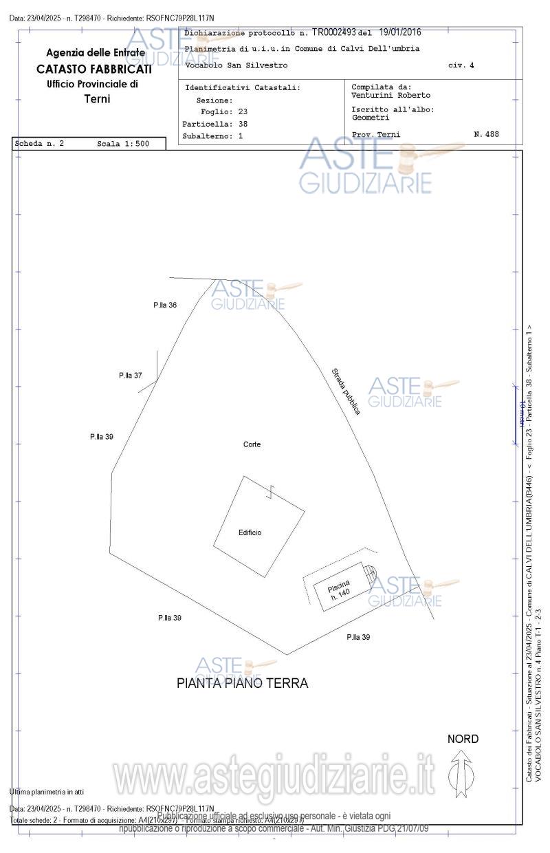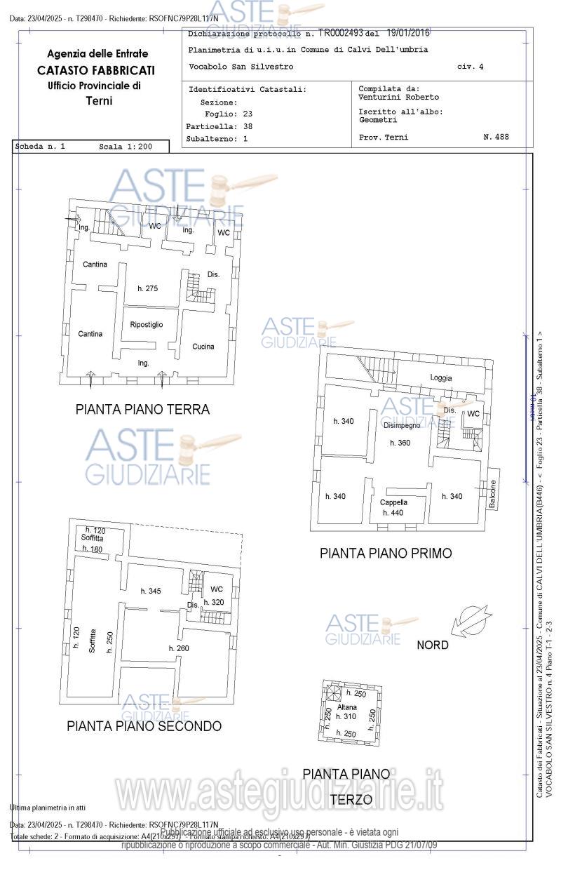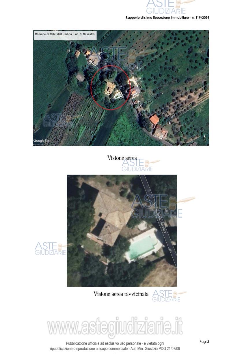 Vendita all'asta Senza incanto, con gara telematica asincrona - LOTTO 1: Fabbricato di antica realizzazione su tre piani fuori terra e altana panoramica, una piscina interrata, delle strutture provvisorie pertinenziali e una corte di pertinenza adibita a giardino e camminamenti; Al piano terra si trova la zona giorno: cucina con camino, sala, 2 camere, 2 bagni e altri accessori. Al piano 1 salone, varie stanze, e cappella. Tramite scala si raggiungono le soffitte, bagno e stanze molto ampie. Il tutto meglio descritto nell'avviso di vendita e nella perizia. Prezzo base € 297.792,00 (offerta minima € 223.344,00). Data inizio operazioni di vendita: 01/04/2026 ore 14:15. Giudice Tommaso Bellei. Professionista delegato alla vendita Dott. Stefano Stellati - Email "stellati@studiostellati.it"; Tel. 0744403138. Custode Giudiziario Dott. Stefano Stellati - Email "stellati@studiostellati.it"; Tel. 0744403138. Rif. Tribunale di Terni - Espropriazione immobiliare (cartabia) n. 119/2024