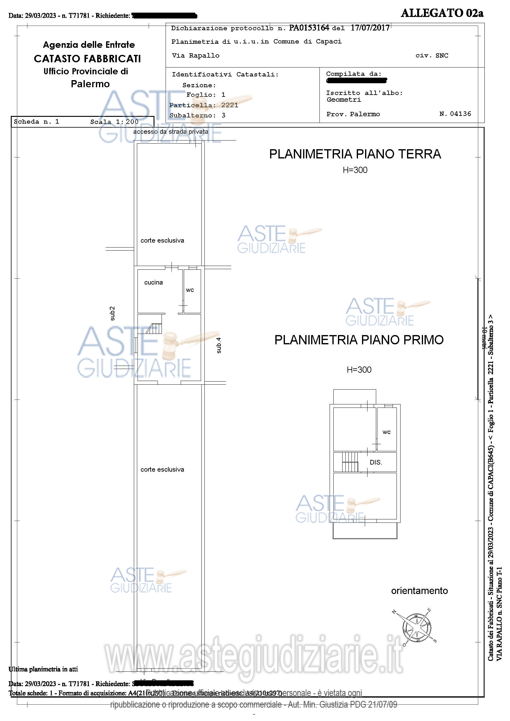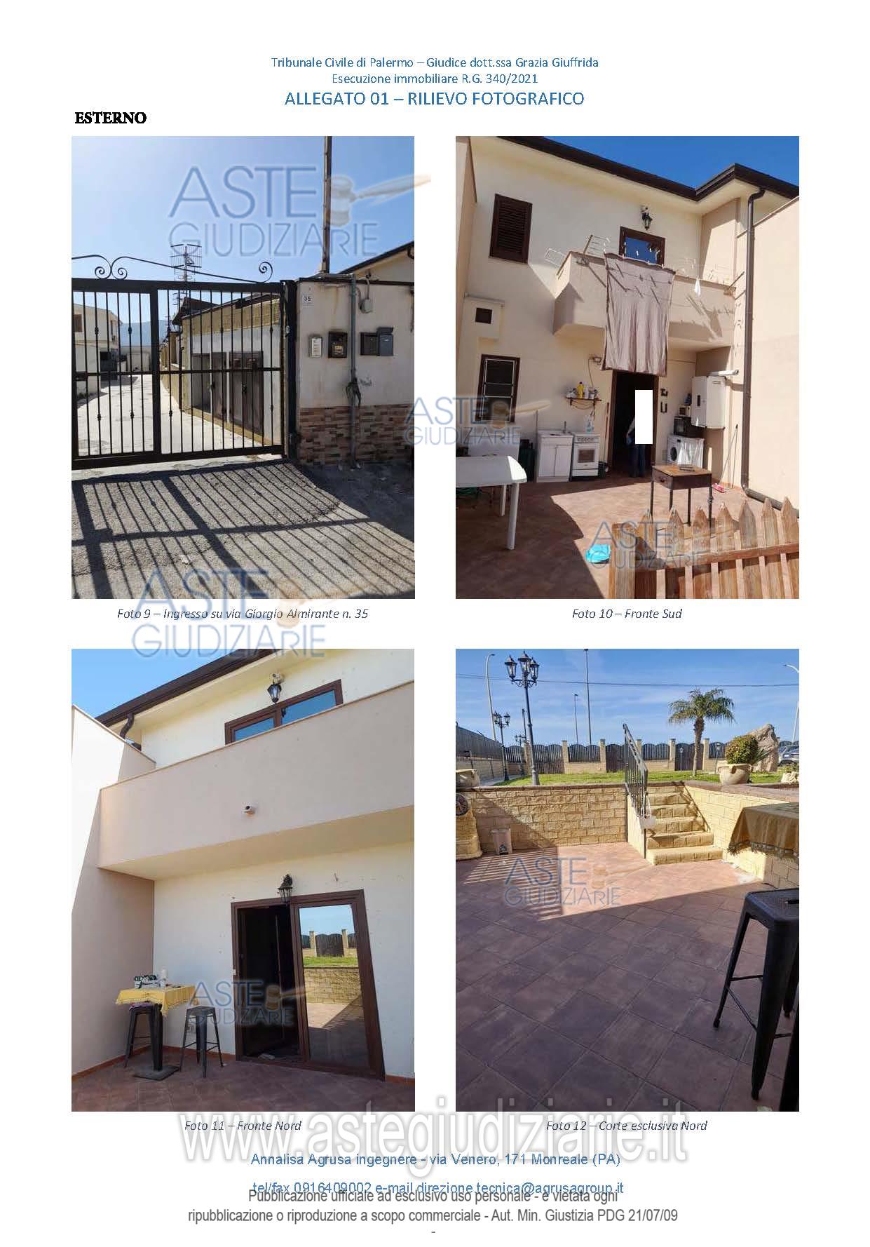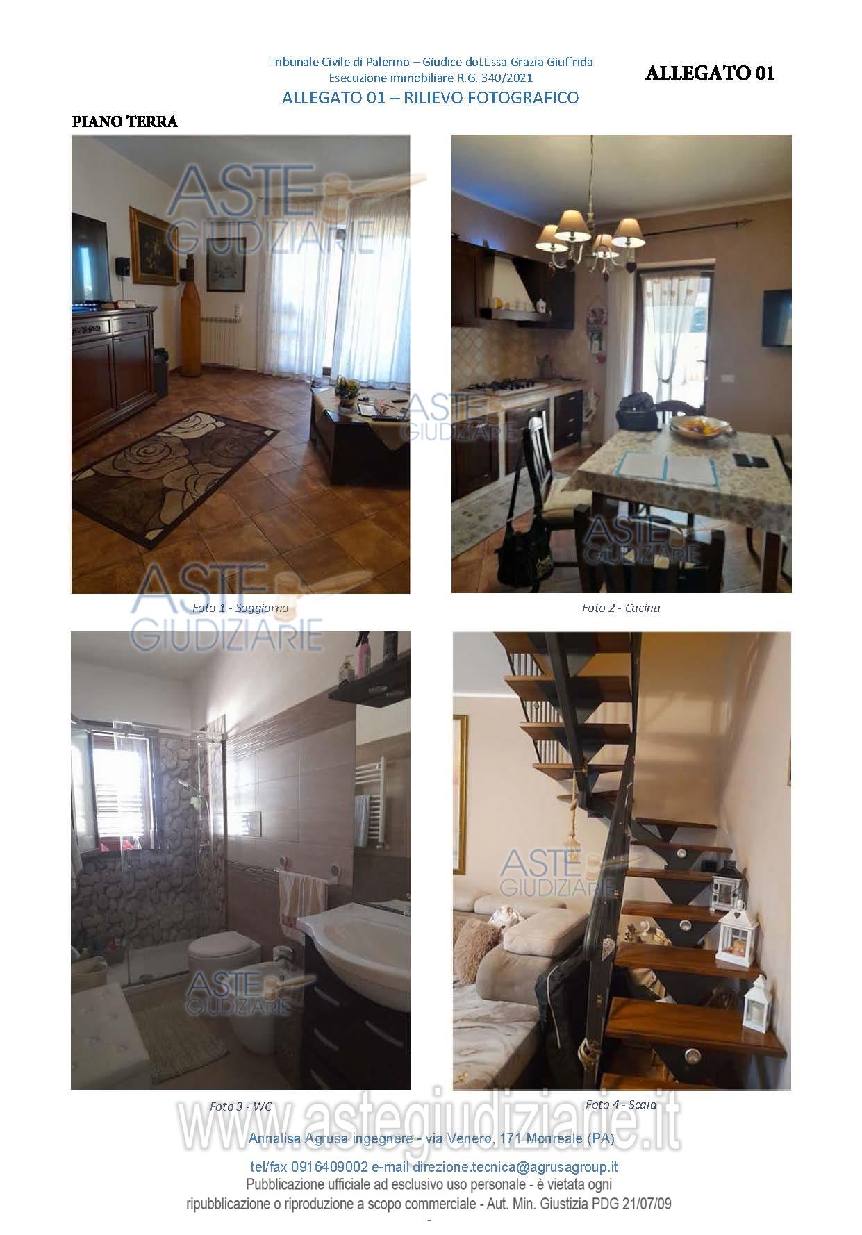 Vendita all'asta Senza incanto, con gara telematica sincrona mista - LOTTO UNICO: Piena proprietà di unità immobiliare (villino per civile abitazione facente parte di un complesso a schiera di abitazioni) sviluppata su due livelli, piano terra e piano primo, sita in Capaci (PA), via Rapallo snc, di superficie commerciale complessiva pari a mq 118,23; identificata al Catasto dei Fabbricati del Comune di Capaci (PA) al foglio 1, particella 2221, sub. 3, categoria A/7, classe 2, consistenza 5,5 vani, rendita € 426,08. Prezzo base € 152.500,00 (offerta minima € 114.375,00). Data vendita 21/05/2026 ore 09:30. Professionista delegato alla vendita Avv. Domenico Carota - Email "assoveda@gmail.com". Custode Giudiziario Avv. Domenico Carota - Email "assoveda@gmail.com". Rif. Tribunale di Palermo - Esecuzione immobiliare post legge 80 n. 340/2021