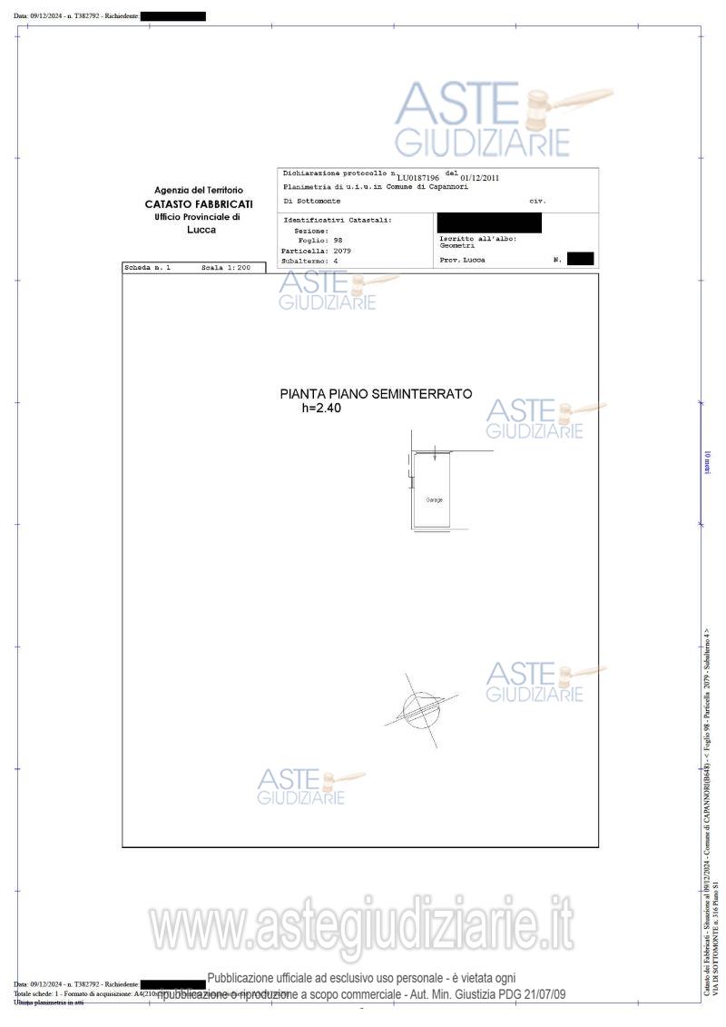Vendita all'asta Senza incanto, con gara telematica sincrona mista - LOTTO UNICO: Civile abitazione in villetta bifamiliare in Comune di Capannori (LU), Via di Sottomonte n. 316/D, della superficie commerciale di 348,87 mq, per la quota di 1/1 di piena proprietà, corredata da un’unità a garage e terreno di pertinenza. Prezzo base € 270.400,00 (offerta minima € 202.800,00). Data vendita 30/01/2026 ore 10:00. Professionista delegato alla vendita Dott. Giulia Tommasi - Email "g.tommasi@associatibss.it"; Tel. 0584361559. Custode Giudiziario Ivg Lucca - Email "custodieivg@gmail.com"; Tel. 0583418555. Rif. Tribunale di Lucca - Espropriazione immobiliare (cartabia) n. 82/2024