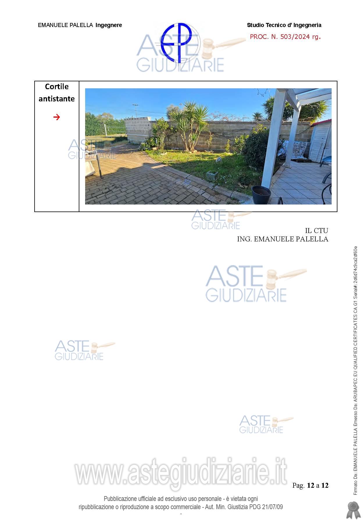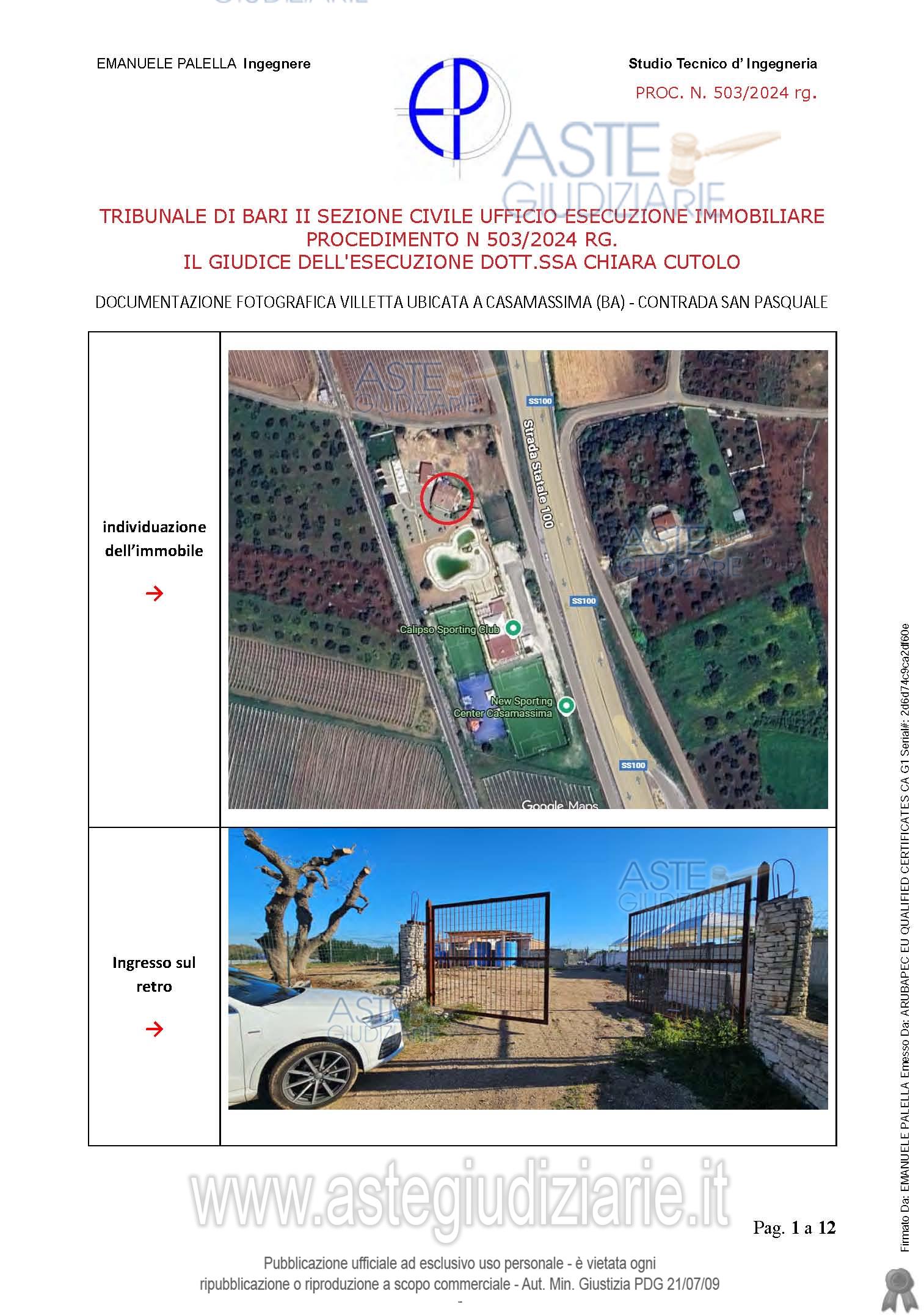Vendita all'asta Senza incanto, con gara telematica asincrona - LOTTO UNICO: Piena proprietà di un villino ad uso abitazione, disposto su un unico livello. E‘ composto da sei vani e mezzo catastali, con circostante area di pertinenza esclusiva della superficie tra coperto e scoperto di mq 260, interclusa con servitù di passaggio e confini da definire. Ha la seguente distribuzione interna: ingresso in un ampio soggiorno, cucina abitabile, 3 camere da letto, un bagno ed un ripostiglio. Prezzo base € 150.000,00 (offerta minima € 112.500,00). Data inizio operazioni di vendita: 07/07/2026 ore 09:30. Giudice Dott. Chiara Cutolo. Professionista delegato alla vendita Dott. Manuela Monica Danila Massari - Email "studio_massari@libero.it". Custode Giudiziario Dott. Manuela Monica Danila Massari - Email "studio_massari@libero.it". Rif. Tribunale di Bari - Espropriazione immobiliare (cartabia) n. 503/2024