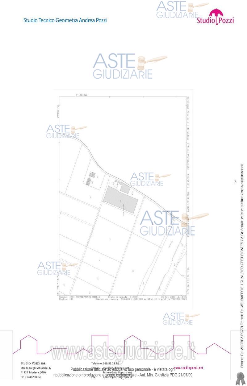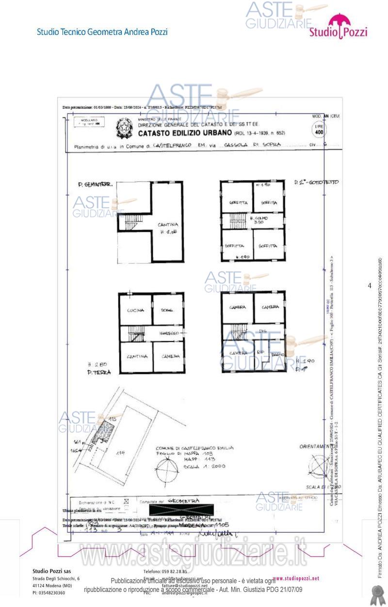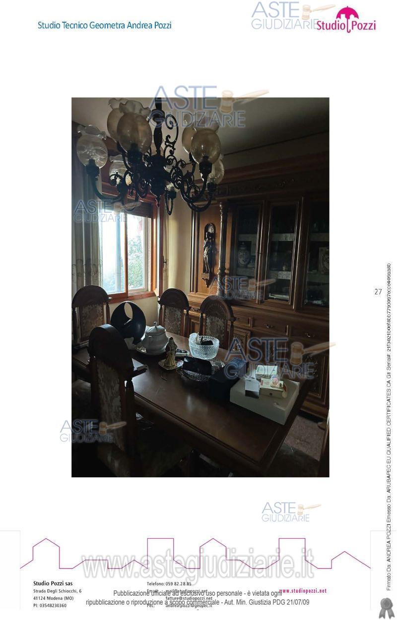 Vendita all'asta Senza incanto, con gara telematica asincrona - LOTTO 2: Piena proprietà in Castelfranco Emilia (MO), località Piumazzo, Via Cassola di Sopra n 2 inambito residenziale di abitazione in buono stato di conservazione in villini composta da due piani con sup. 192 m2 ealtezza interna di 2,80m; dati catastali: Foglio 103 particella 159 sub 7, cat. A/7, piano T-1, categoria A/7, classe 3, consistenza Vani 6,5, rendita euro 785,01, superficie catastale totale mq. 192, totale escluse aree scoperte mq. 181). Prezzo base € 158.400,00 (offerta minima € 118.800,00). Data inizio operazioni di vendita: 24/03/2026 ore 11:00. Professionista delegato alla vendita Dott. Giada Sanneris - Email "giada.sanneris@gmail.com". Custode Giudiziario Alex Manelli - Email "visiteimmobili@ivgmodena.it"; Tel. 059847301. Rif. Tribunale di Modena - Espropriazione immobiliare (cartabia) n. 27/2024