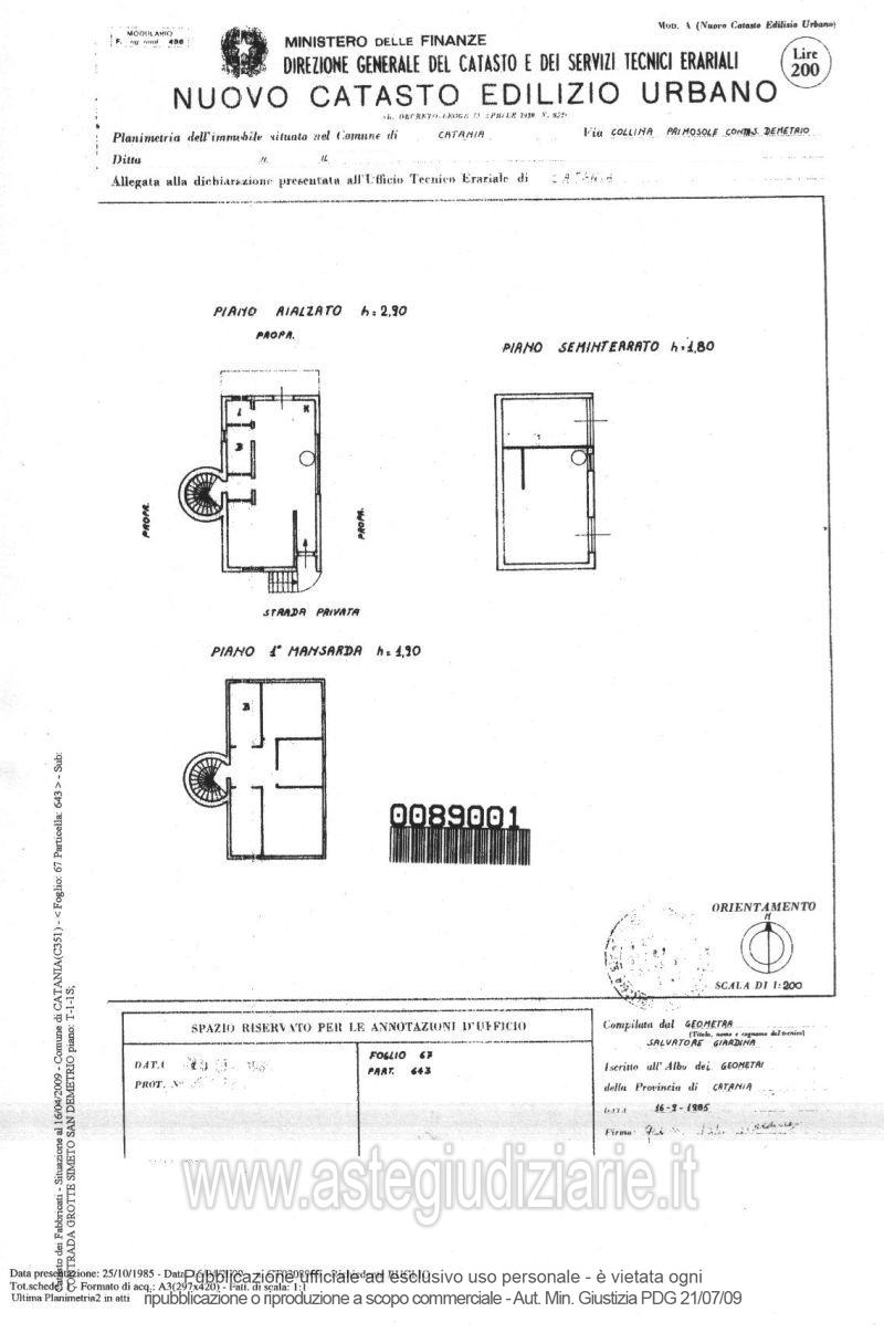Vendita in attesa dell'emissione del nuovo bando d'asta. LOTTO UNICO: Villino al piano cantinato, piano terra e primo con corte. Ultimo prezzo base € 72.774,00 (offerta minima € 54.582,00). Giudice Dott. Nelly Gaia Mangiameli. Professionista delegato alla vendita Not. Arturo Pittella. Custode Giudiziario Not. Arturo Pittella - Email "apittella@notariato.it". Rif. Tribunale di Catania - Esecuzione immobiliare post legge 80 n. 935/2008