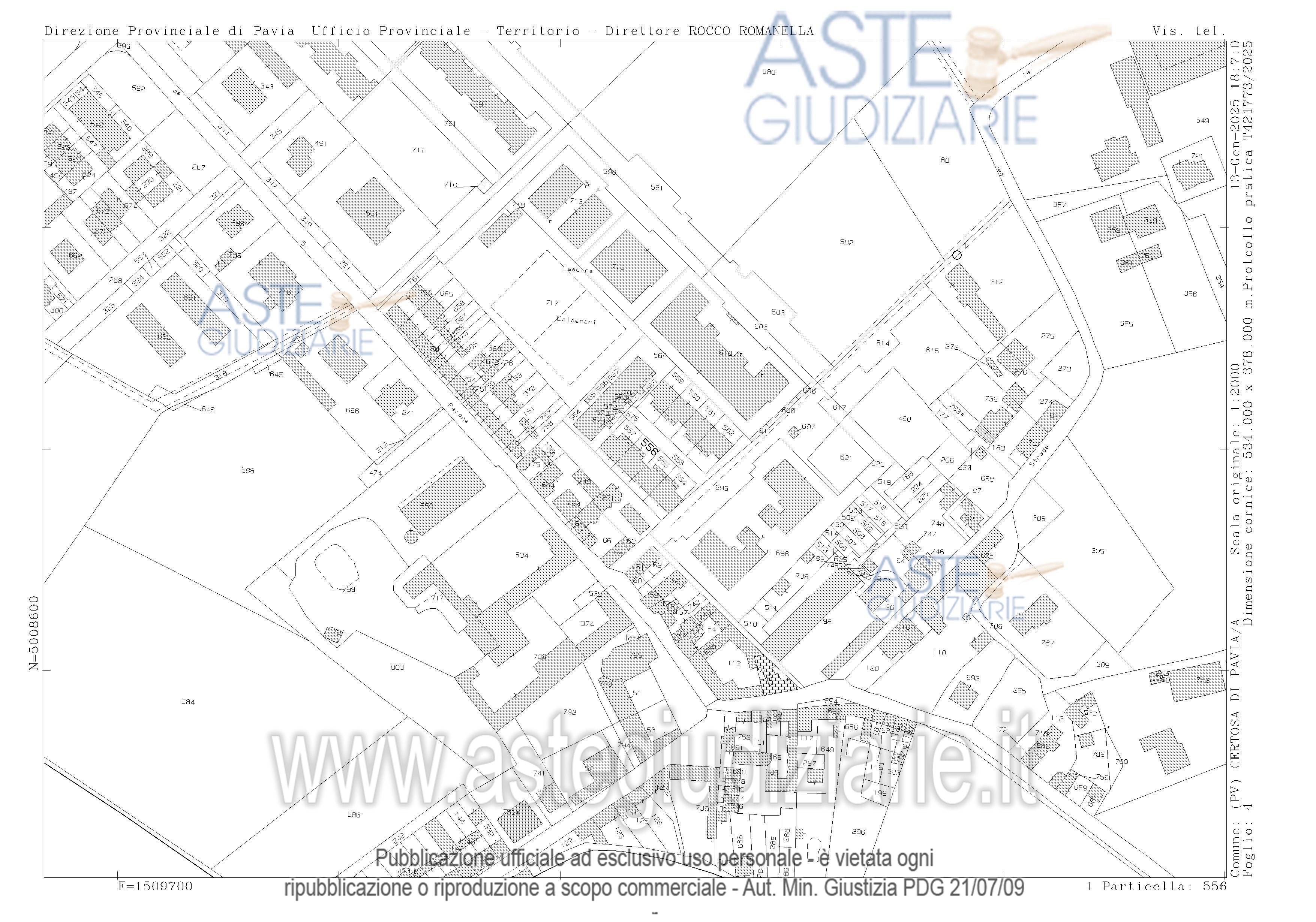 Vendita all'asta Senza incanto, con gara telematica asincrona - LOTTO UNICO: in Comune di CERTOSA DI PAVIA (PV), frazione Cascine Calderari, via Fellini n. 3/CPiena proprietà di villetta a schiera su due livelli con sedime di proprietà, autorimessa e locali di sgombero al piano primo. Prezzo base € 160.000,00 (offerta minima € 120.000,00). Data inizio operazioni di vendita: 13/01/2026 ore 10:00. Giudice Erminio Rizzi. Professionista delegato alla vendita Dott. Cristina Lissi. Custode Giudiziario Ivg Pavia Lodi Srl - Email "immobiliare@ivgpavialodi.it". Rif. Tribunale di Pavia - Espropriazione immobiliare (cartabia) n. 475/2024