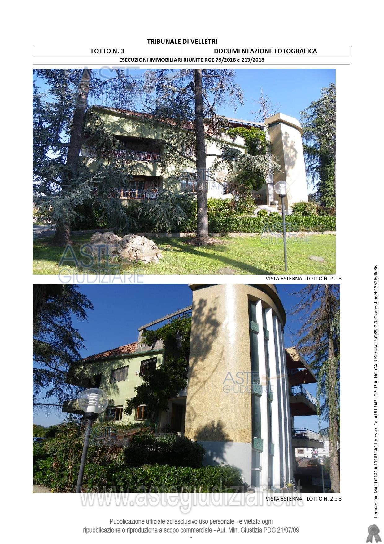 Vendita all'asta Senza incanto, con gara telematica asincrona - LOTTO 3: Porzione di villino bifamiliare con annessa corte comune. Prezzo base € 482.000,00 (offerta minima € 385.500,00). Data inizio operazioni di vendita: 30/04/2026 ore 10:00. Giudice Dott. Raffaella Calvanese. Professionista delegato alla vendita Avv. Lorenzo Cervellera. Custode Giudiziario Avv. Lorenzo Cervellera - Email "avv.lorenzocervellera@gmail.com". Rif. Tribunale di Velletri - Esecuzione immobiliare post legge 80 n. 79/2018