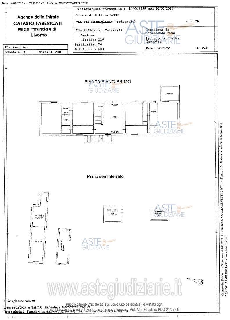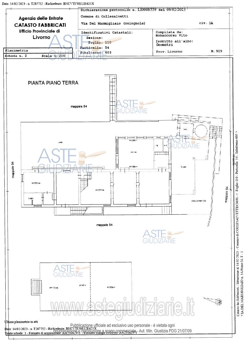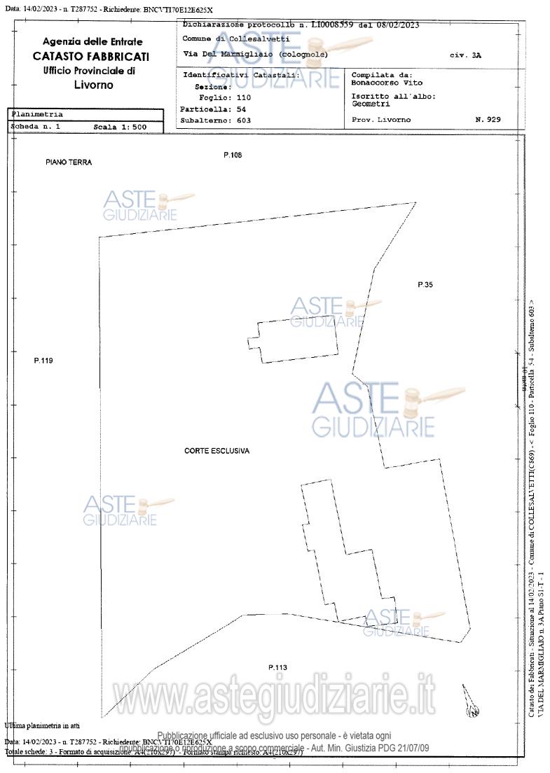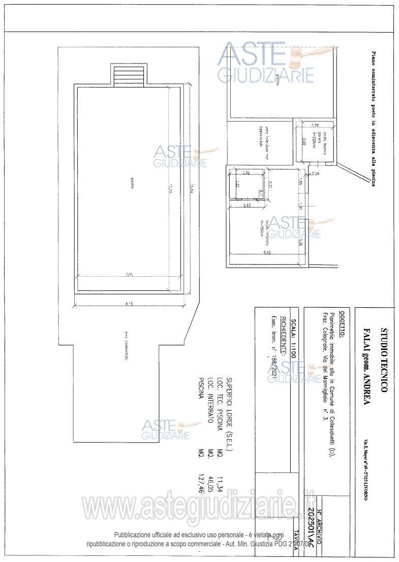 Vendita all'asta Senza incanto, con gara telematica asincrona - LOTTO UNICO: Fabbricato unifamiliare terratetto ubicato in Collesalvetti (LI), Frazione Colognole, LocalitàBelvedere, Via del Marmigliaio n. 3 (anche indicato come n. 3/a), con corte esclusiva, accessoried annessi appezzamenti di terreno della superficie di circa mq. 17.440,00. Prezzo base € 998.700,00 (offerta minima € 749.025,00). Data inizio operazioni di vendita: 26/03/2026 ore 15:30. Giudice Dott. Elisa Pinna. Professionista delegato alla vendita Avv. Piergiovanni Razzauti. Custode Giudiziario Avv. Clara Porcari - Email "claraporcari@alice.it". Rif. Tribunale di Livorno - Esecuzione immobiliare post legge 80 n. 188/2021