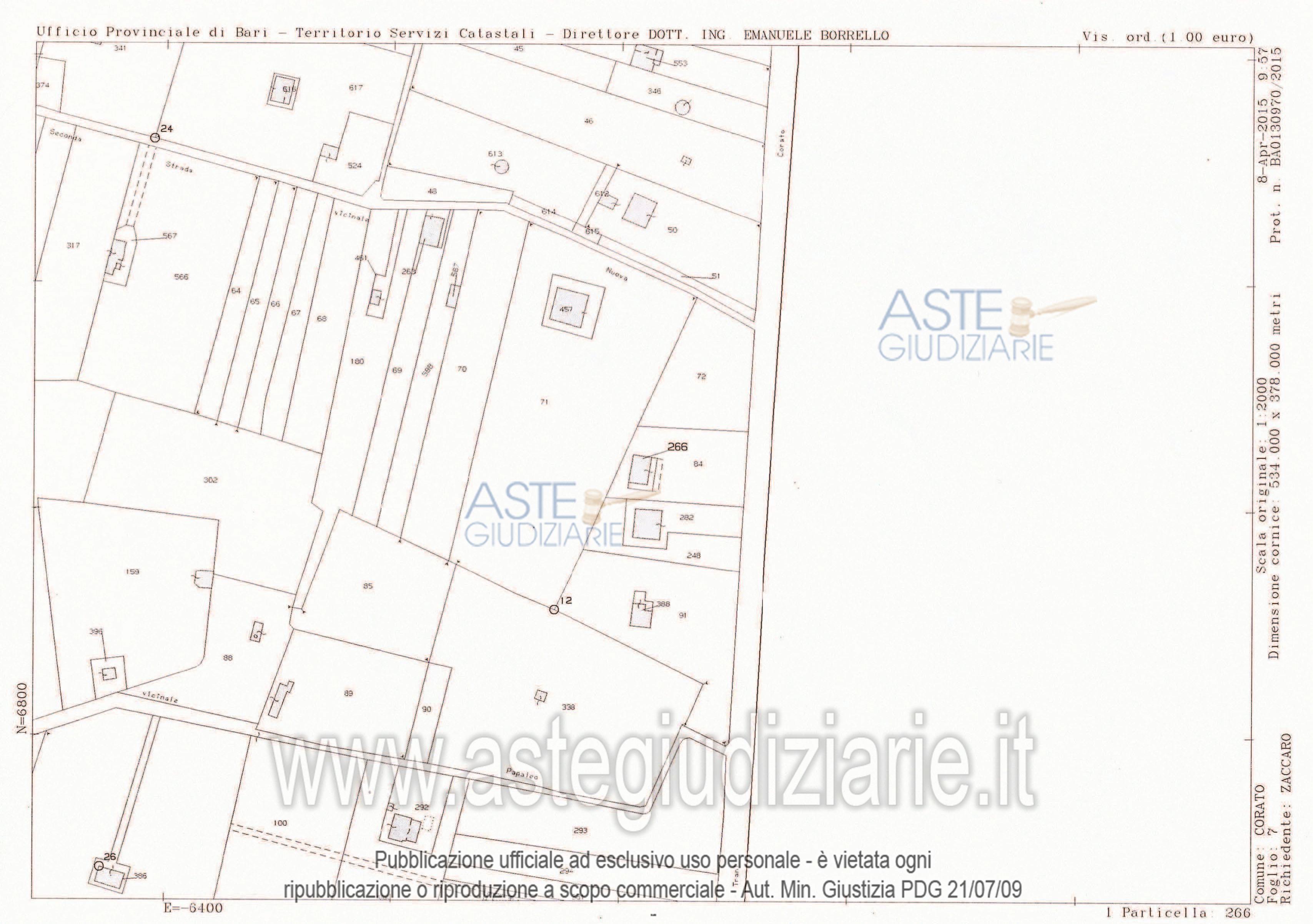 Vendita all'asta Senza incanto, con gara telematica asincrona - LOTTO UNICO: Piena proprietà del fabbricato rurale indipendente e pertinenziale terreno circostante. Prezzo base € 99.000,00 (offerta minima € 74.250,00). Data inizio operazioni di vendita: 20/05/2026 ore 15:00. Giudice Valeria Guaragnella. Professionista delegato alla vendita Avv. Giandomenico Lavermicocca - Email "ninni.lavermicocca@libero.it". Rif. Tribunale di Bari - Contenzioso civile n. 12090/2012