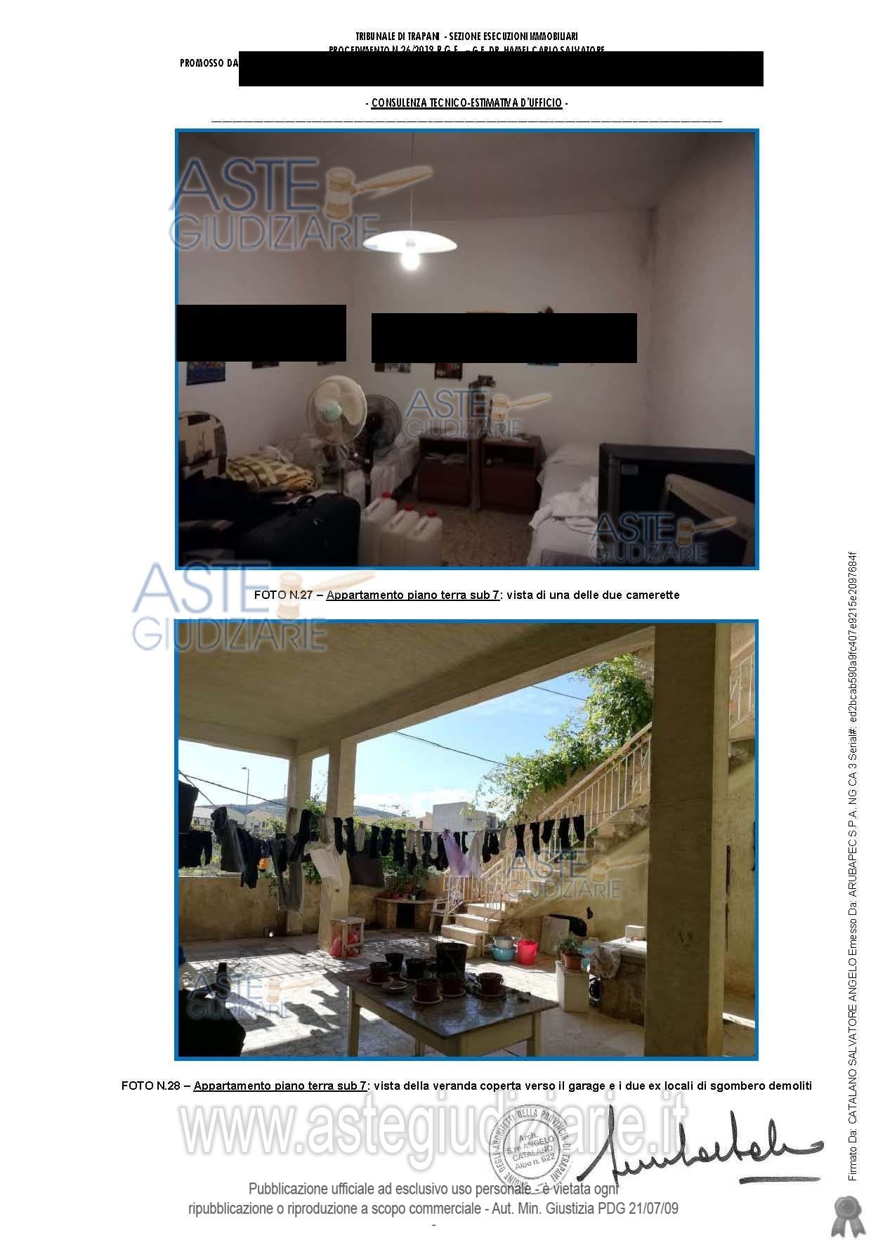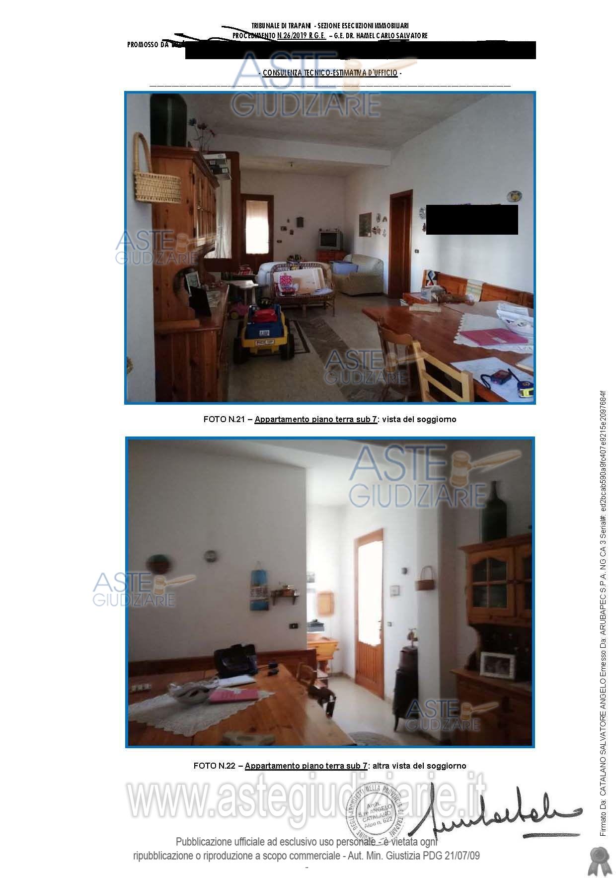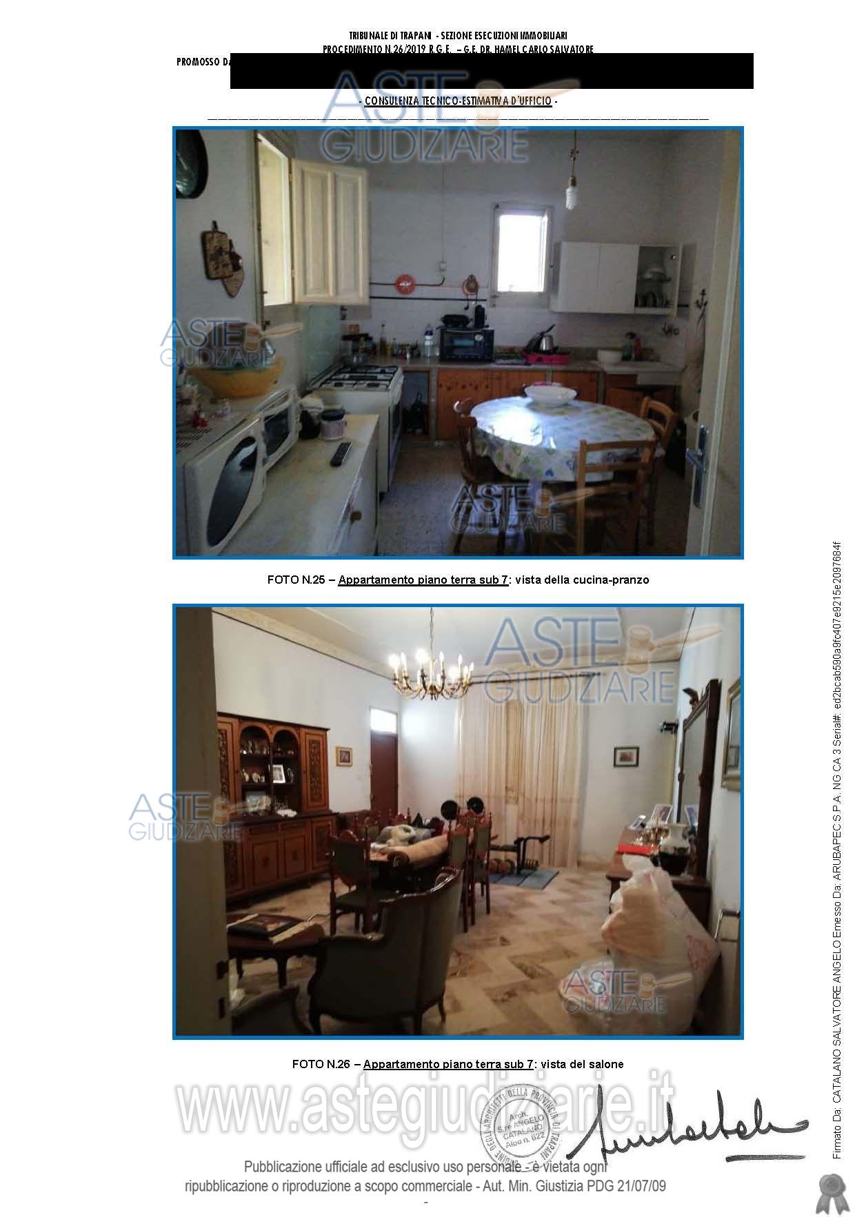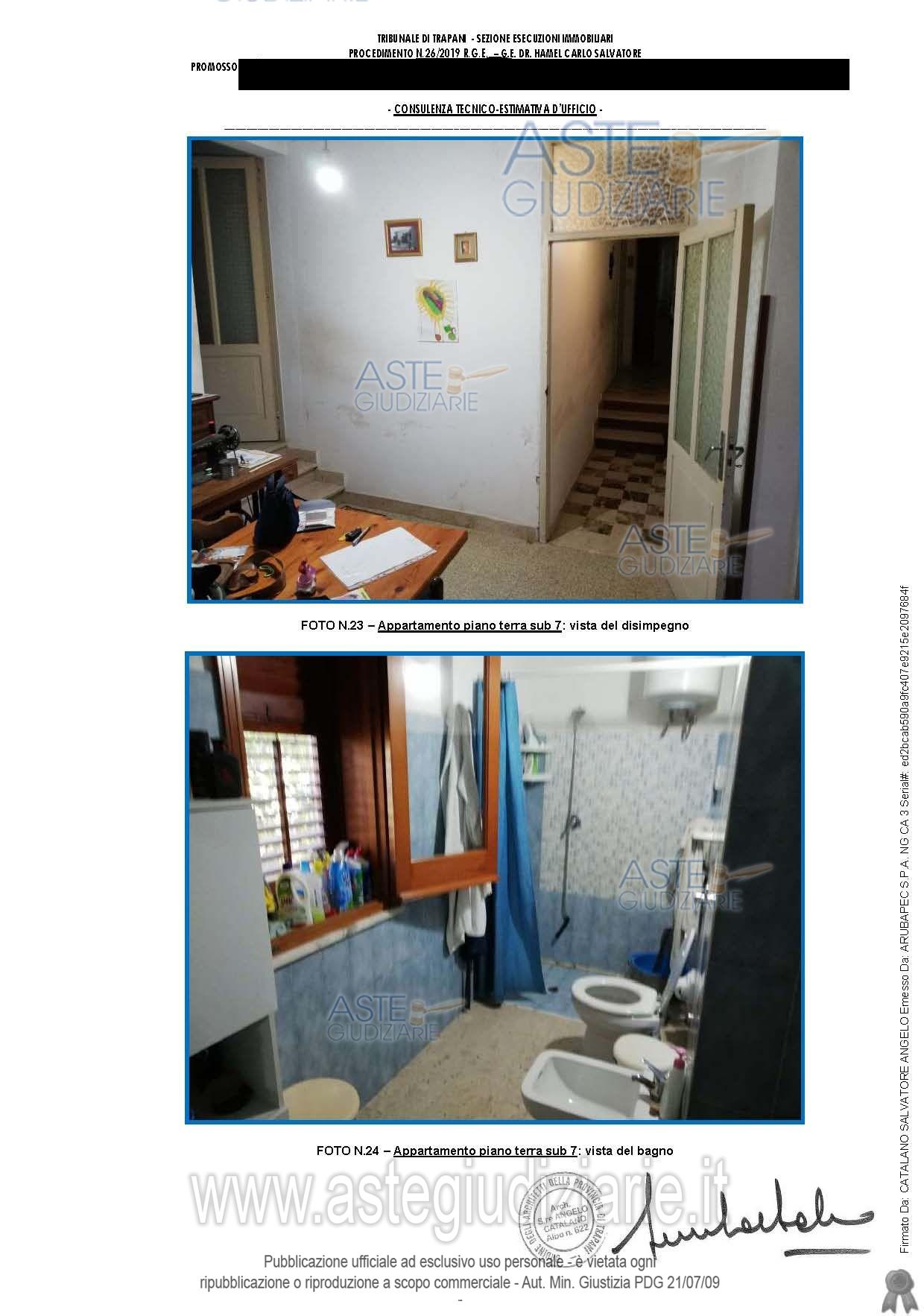 Vendita all'asta Senza incanto, con gara telematica asincrona - LOTTO 2: Appartamento di civile abitazione al piano terra di un fabbricato, consistenza 7,5 vani. Prezzo base € 18.036,00 (offerta minima € 13.527,00). Data inizio operazioni di vendita: 19/03/2026 ore 12:00. Giudice Anna Loredana Ciulla. Professionista delegato alla vendita Avv. Girolamo Indelicato - Email "avv.girolamoindelicato@gmail.com"; Cell. 3345910598; Tel. 092322259. Custode Giudiziario Avv. Girolamo Indelicato - Email "avv.girolamoindelicato@gmail.com"; Cell. 3345910598; Tel. 092322259. Rif. Tribunale di Trapani - Esecuzione immobiliare post legge 80 n. 26/2019