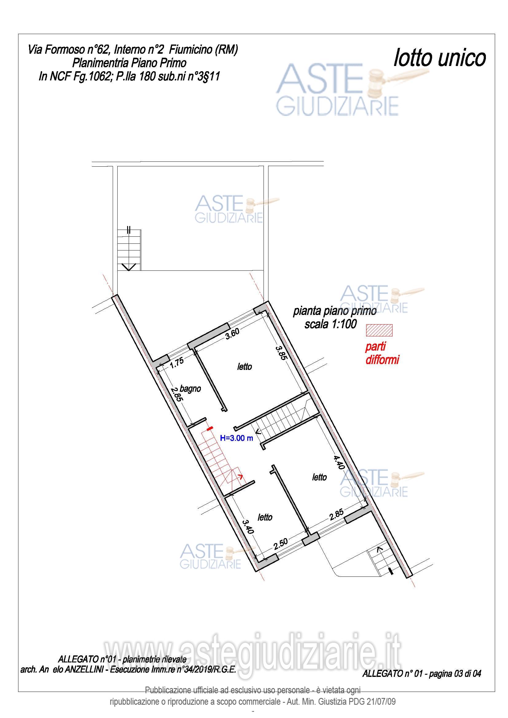 Vendita all'asta Senza incanto, con gara telematica asincrona - LOTTO UNICO: Villino residenziale distanza di 100 m circa dal mare, articolato su quattro livelli (dei quali PS1, PT, P1°, PSt), oltre ad un box e una corte pertinenziale, ubicato nel Comune di Fiumicino (RM), in Località “Isola Sacra”, Via Formoso n°62 int 2 . In NCF è censito al Fg. n°1062, P.lla n°180, Subalterni n°3§11 e n°4, confinante con area condominiale comune ai quattro villini a schiera, Interno 1 (villino 1), Interno 3 (villino 3) salvo altri . Come meglio descritto in perizia. Prezzo base € 255.000,00 (offerta minima € 191.250,00). Data inizio operazioni di vendita: 29/04/2026 ore 16:00. Giudice Stefano Palmaccio. Professionista delegato alla vendita Dott. Clelia Amore - Email "clelia.amore@virgilio.it"; Cell. 3358057736; Tel. 0699223302. Custode Giudiziario Dott. Clelia Amore - Email "clelia.amore@virgilio.it"; Cell. 3358057736; Tel. 3358057736. Rif. Tribunale di Civitavecchia - Esecuzione immobiliare post legge 80 n. 34/2019